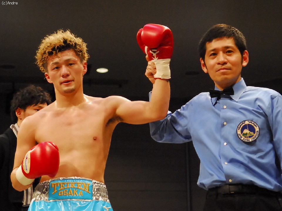 試合:見高は,前に出る横里に左フックで出端を止めると右ストレートをあてていく。対してサウスポーの横里は右ジャブから飛び込むと接近して左右のボディを打ち抜く。判定で見高の勝利。