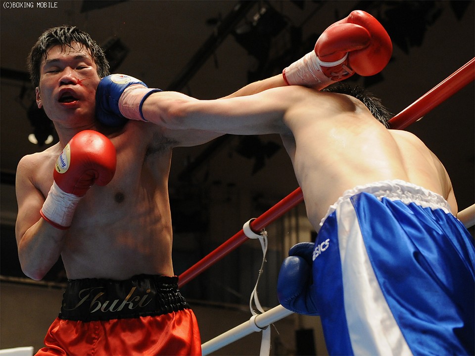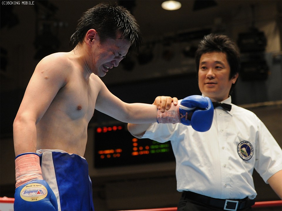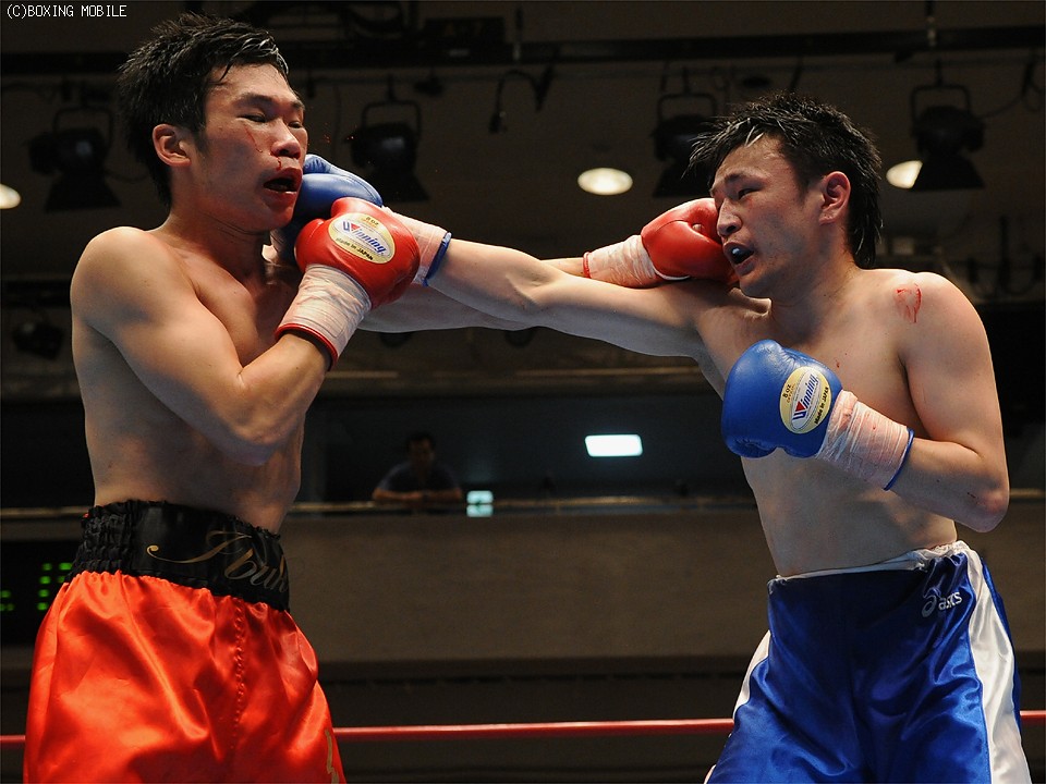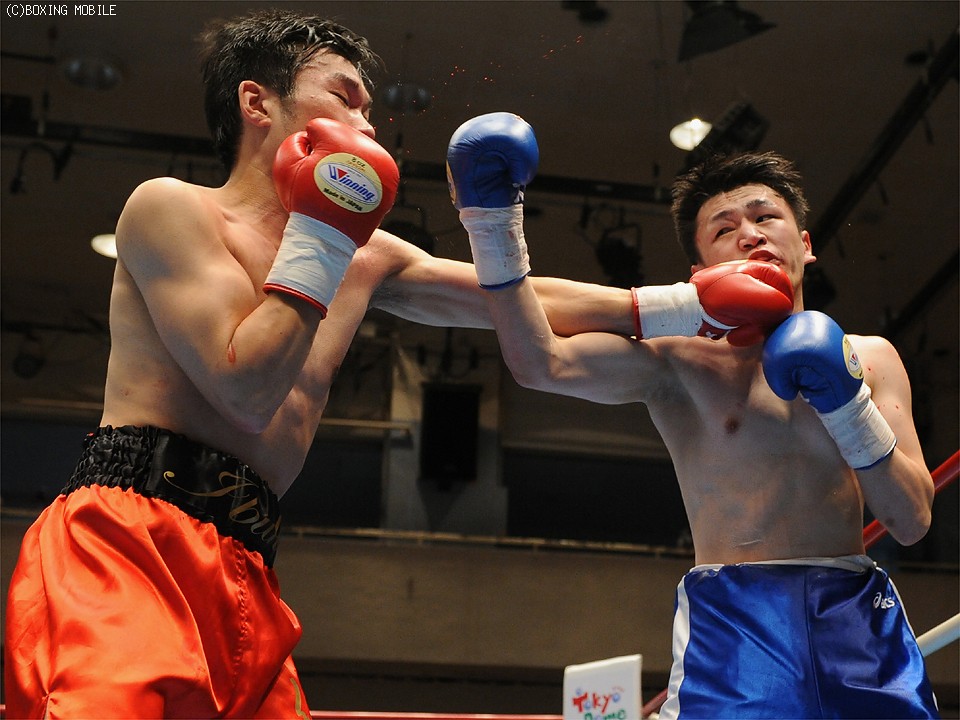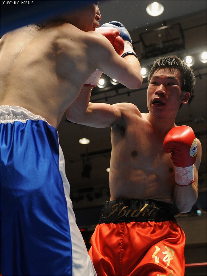 試合:身体を左右に振りながらワンツーを浴びせるサウスポーの佐藤に対し、北出は下がりながらも右ストレートで有効打を奪う。中盤、北出は連打で追い込むが、佐藤も反撃。最終R、開始と共に打ち合いに出る両者。決定打は無いものの、佐藤がデビューから2連勝。