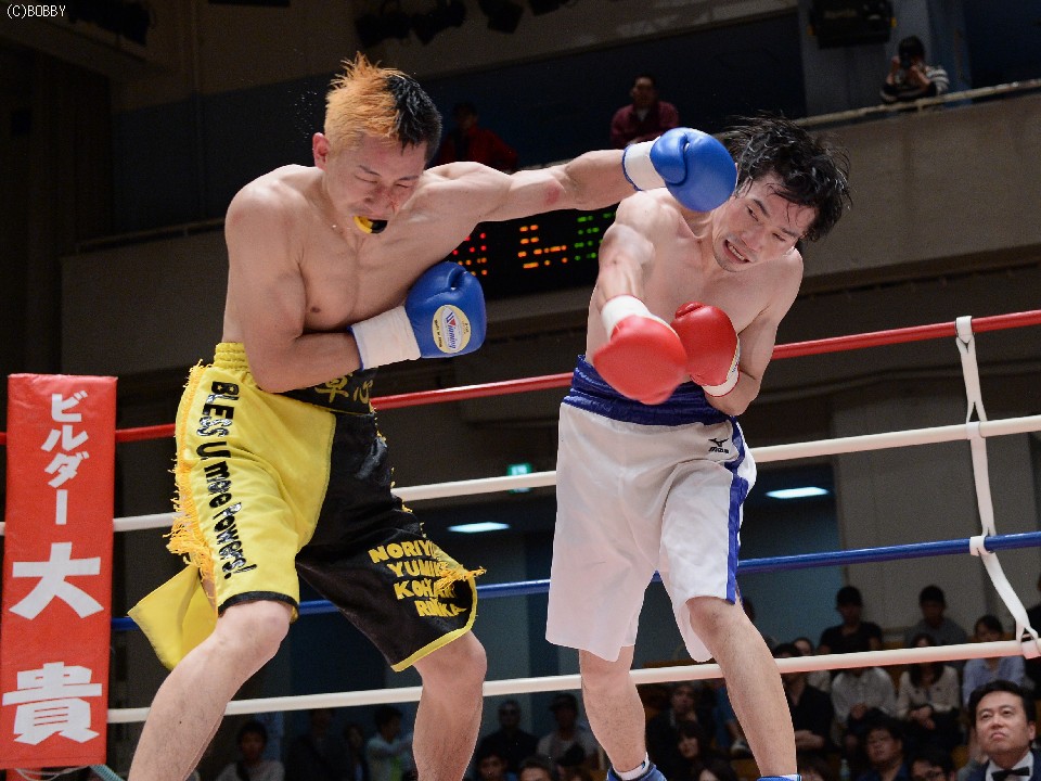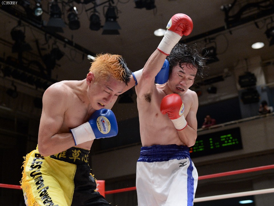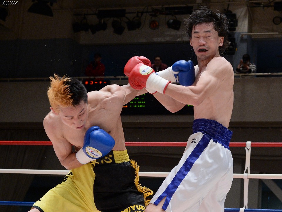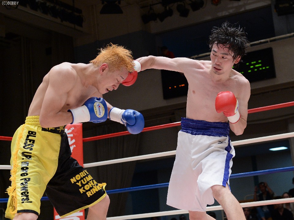 試合:5度目のタイトル挑戦を目指す上野が、開始からジャブとスピードで上回り、右ストレート、左フックとキレのあるパンチをヒット。ここ数年勝ち負けを繰り返す小泉もジャブの軌道を変化させては踏み込むが、上野はすぐにギアを上げ左で試合をコントロール。小泉はスイッチを繰り返しながら反撃のチャンスを窺い、手数では上回るもののやはり上野の左フックが厄介か。足で捌く上野をガードを固めて必死に追うが差は縮まらず、6Rにはボディを効かされてしまう。終盤も強烈な左ボディを何度も打ち込まれた小泉だが、最後まで諦めずに前に出て反撃。ランカー挑戦への執念を見せた。