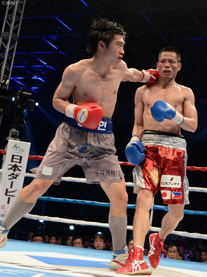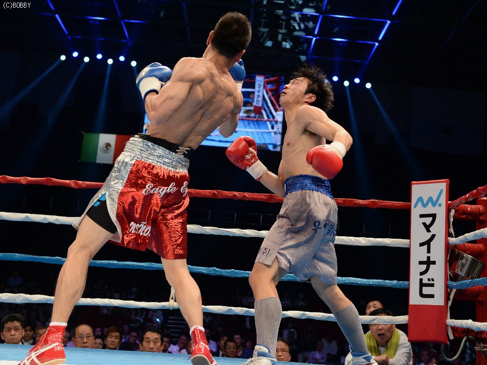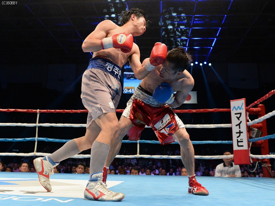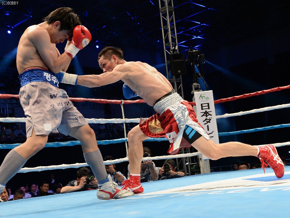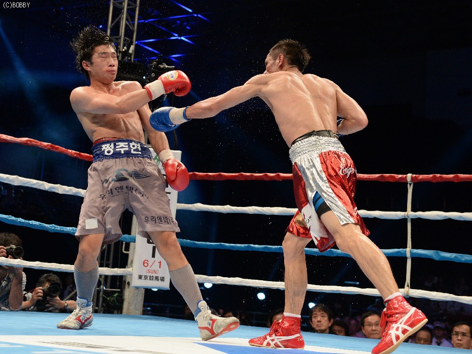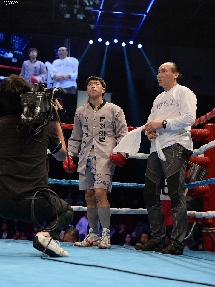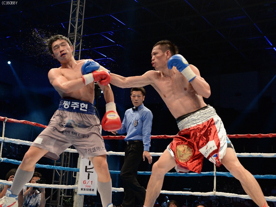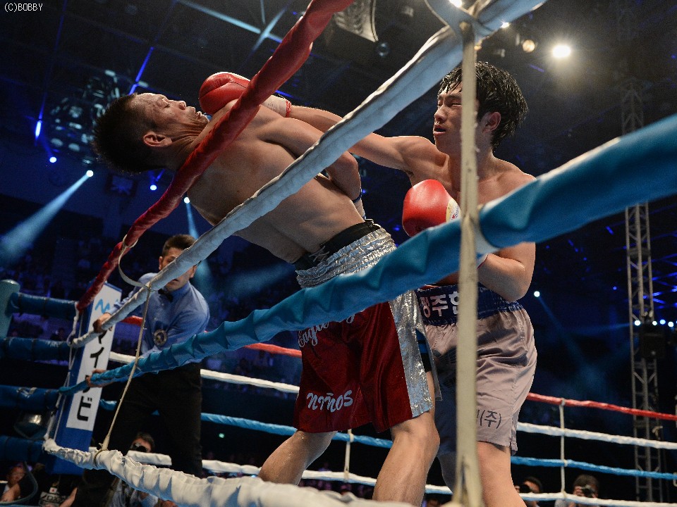 試合:サウスポーのマルコムは右ジャブで距離をつかむと左ストレートを上下に打ち分ける。対し鄭はガードを固め頭を振りながら前に出ると右ストレートを狙う。鄭の動きを見極めたマルコムは鄭の踏み込みに合わせ左アッパー、左右のフックをヒット。鄭のノーモーションの右ストレートも交わすと中盤、スタミナは落ちたがキャリアを活かし右ジャブを的確にあて主導権は渡さない。鄭も時折マルコムの右ジャブを交わし飛びこむがパンチは空を切る。最終ラウンド、マルコムの左ストレートが決まり鄭の膝が揺れたが、決定打には至らず判定でマルコムの勝利。