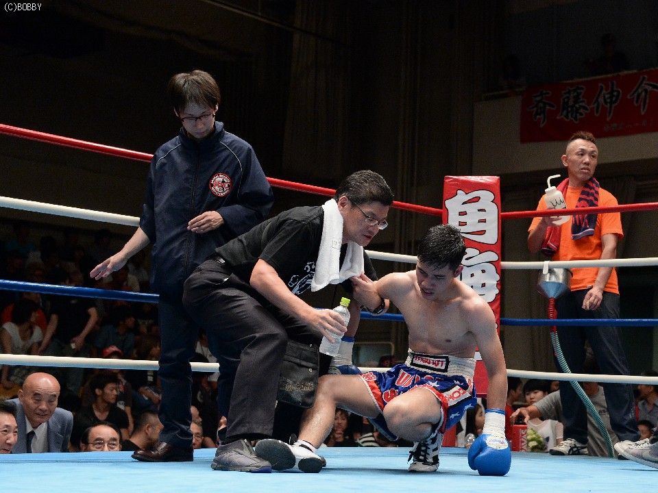 試合:慎重に左で探りを入れる小國に対し、ライアンは左構えにスイッチしたりガードを下げたりと挑発を繰り返したが、効果はみられなかった。2回、小國はトリッキーなライアンに右ストレートや左右コンビネーションを浴びせて主導権を掌握。しかし、小國は慎重な姿勢を崩さず、噛み合わせが甘いままラウンドが進んだ。4回、小國はペースを上げ、ワンツーでライアンにダメージを与えた。そんななか小國が左ボディをヒットするとライアンはダウン。その際に右足首を捻った様子で、これをみたレフェリーはカウント途中で試合を止めた。小國は14戦13勝(4KO)1敗、ライアンは19戦14勝(5KO)5敗。