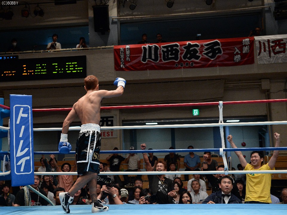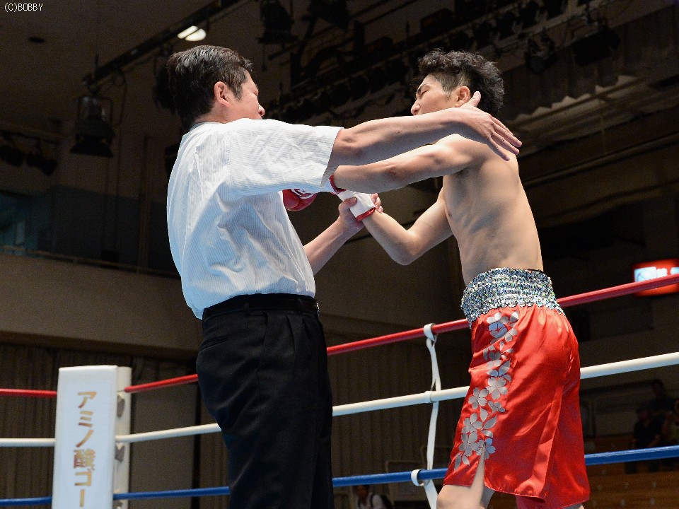 試合:初回、志賀の踏み込みに距離を測っていた栗原だが、ジャブから右に繋げられ敢えなくダウン。立ち上がりダメージも感じさせなかったが、レフェリーは続行不能と判断。ストップとなった。