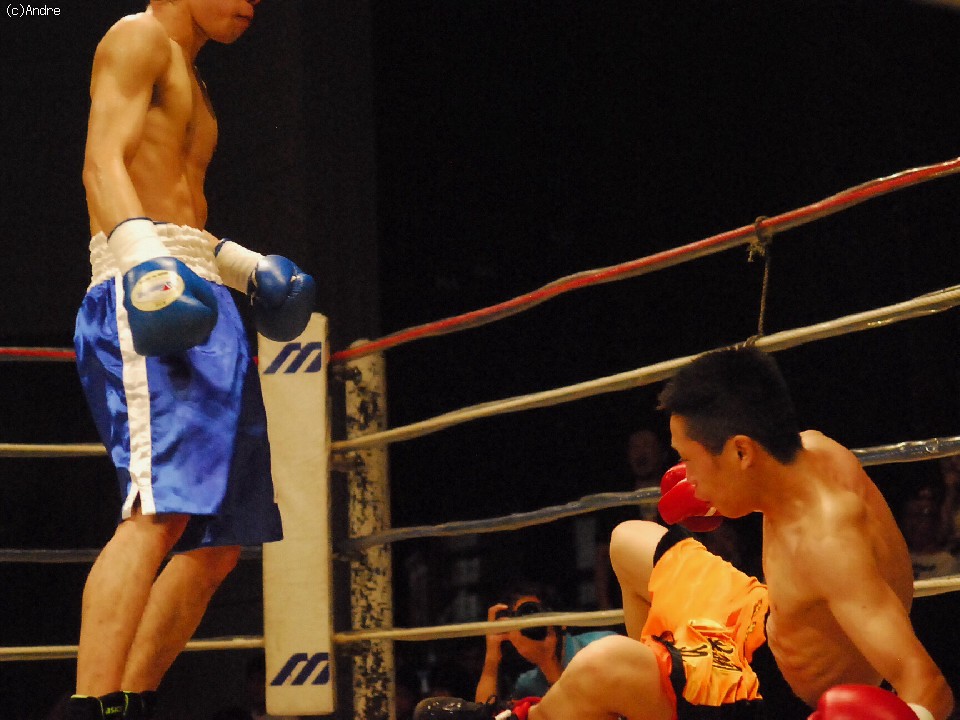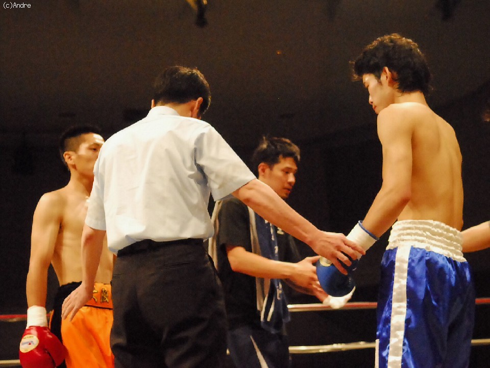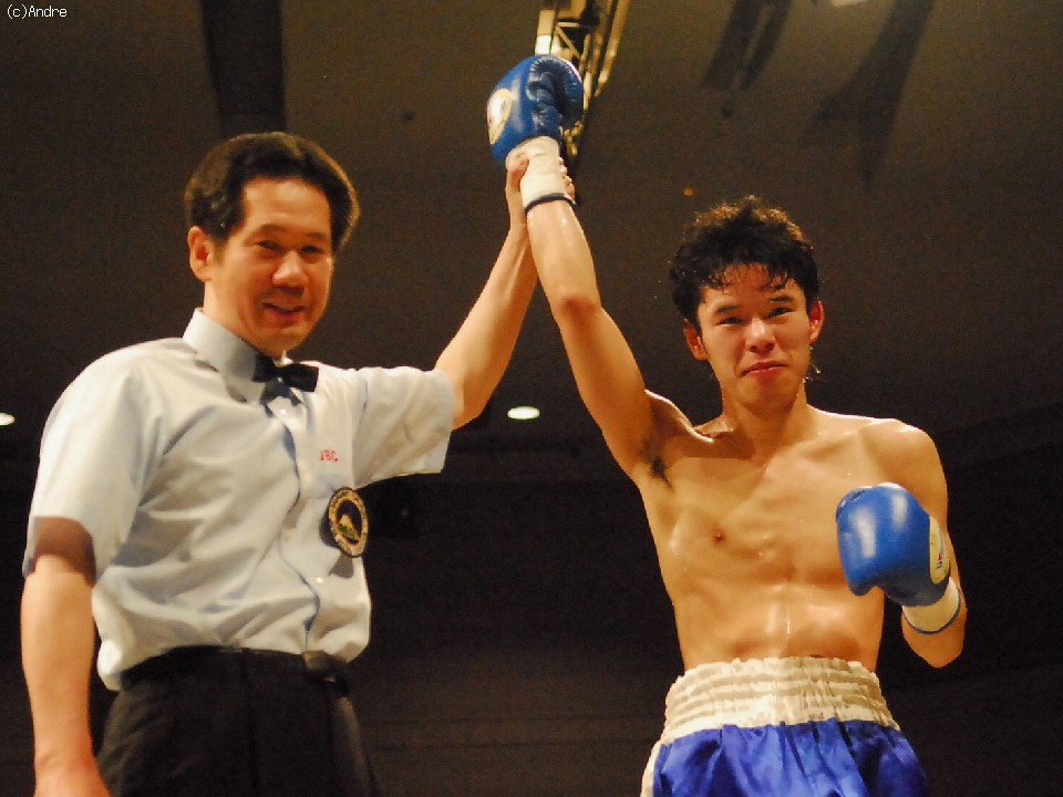 試合:開始早々大田の右ショートストレートが決まり川下がダウン。しかしダメージ少なく立ち上がりこのラウンドをしのぐ。大田はウェービングを使い川下の左ジャブをかいくぐり右ストレートを狙う。対し川下は足を使い左ジャブで大田の出端を突く。3R序盤、再び大田の右ストレートが炸裂し川下がダウン。しかしここも川下ダメージ少なく立ち上がりこのラウンドをしのぐ。4R開始早々大田の右ストレートをまともに浴びた川下が3度目のダウン、立ち上がるも膝が揺れレフェリーが試合を止めた。