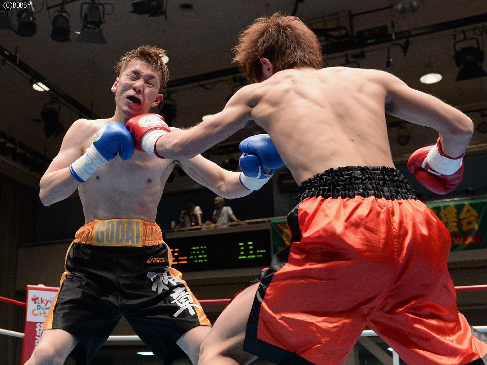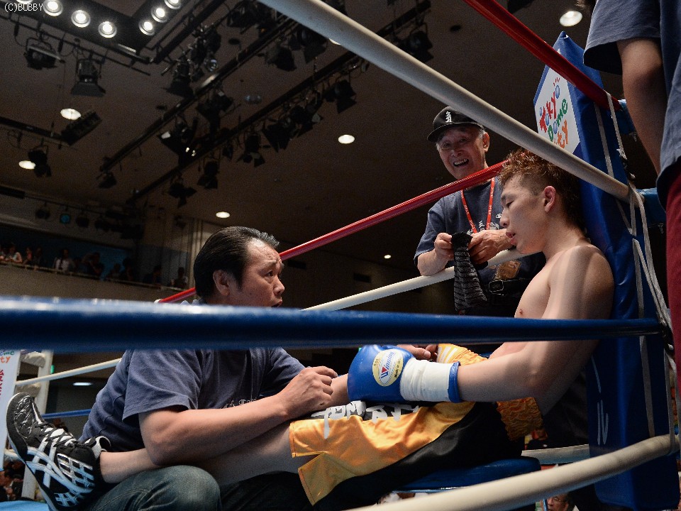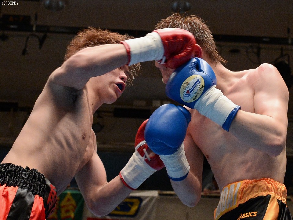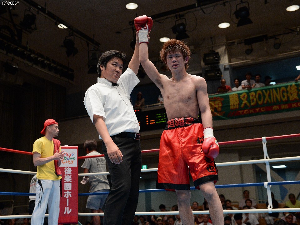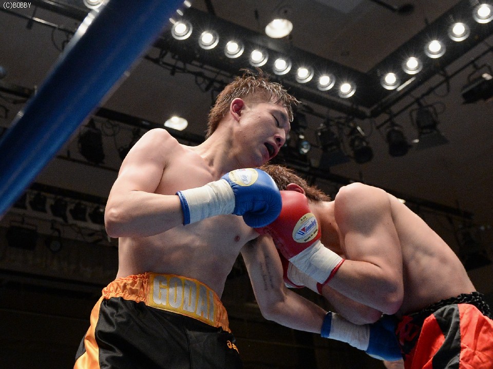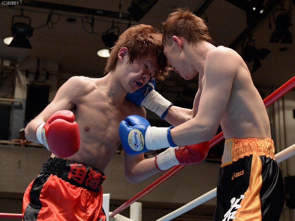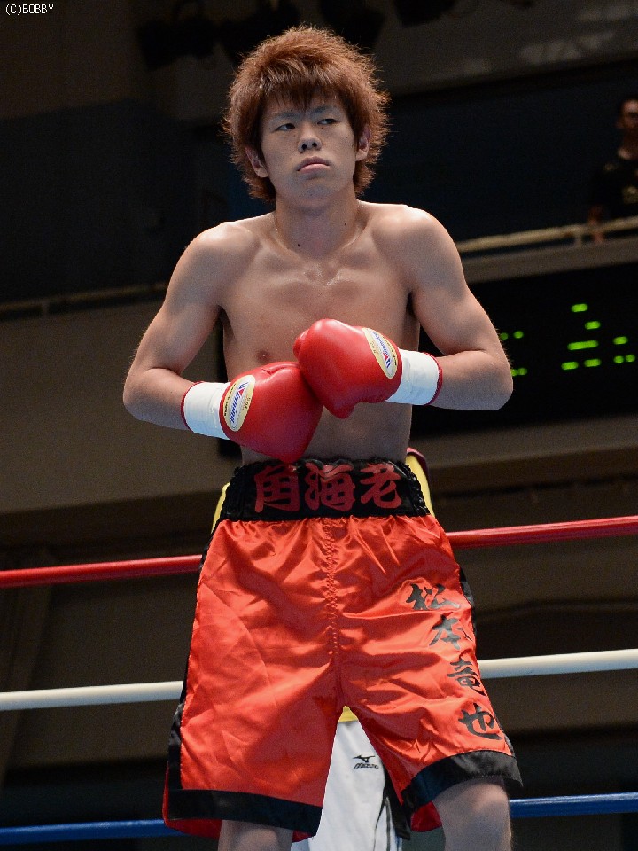 試合:デビュー戦の徳岡がスピードを生かして右ストレートで仕掛けるが、松本もすぐに距離をキープし、ジャブで押さえて右を叩き込む。それでも徳岡は表情を変えずに圧力をかけ、松本を打ち合いに引き込む。2Rには頭を振ってパンチをかわし、単発ながら右クロスでヒットを奪うが、松本も距離を作っては右の強打、接近戦ではボディを攻めて一歩も引かず。後半は頭をつけての打ち合いが続き、押されては押し返す我慢比べとなったが、松本が的確な有効打で勝り、初勝利を上げた。