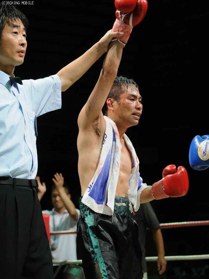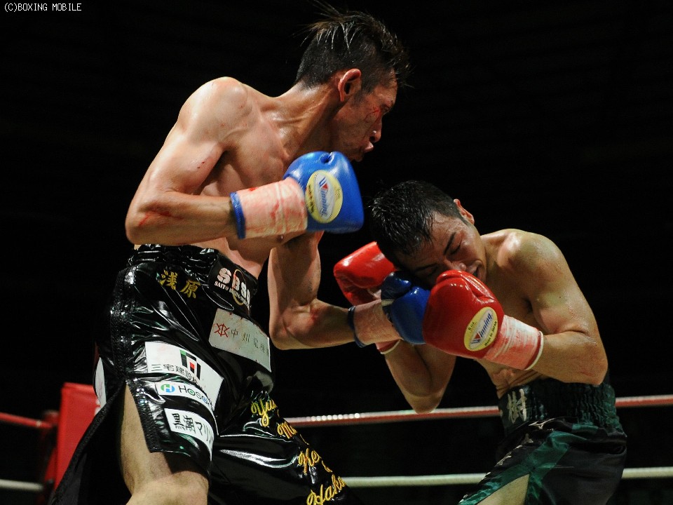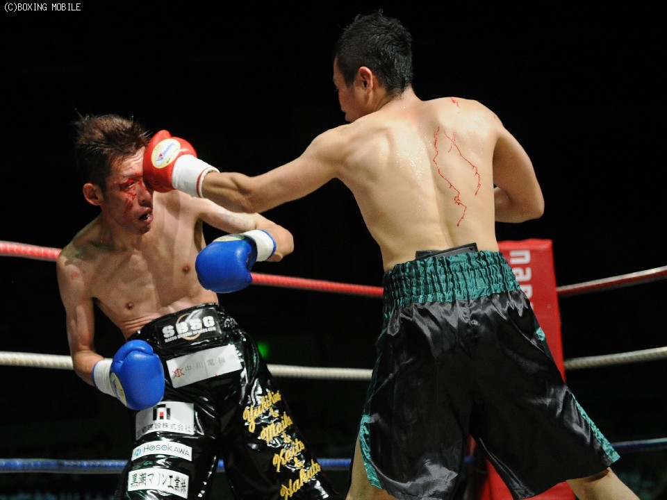 試合:左右を振るいながら前に出る小柳に対し、リーチ優位の浅原は今ひとつ攻撃のテンポが掴めず。それでも右アッパーで小柳の顔を跳ね上げ右ストレートで序盤は優勢。しかし、2発目、3発目が続かず、手数で攻める小柳にガードの時間が長くなってしまう。3Rには右アッパーで小柳を棒立ちにさせたが、小柳の手は止まらず、ヒッティングで右目上をカットするビハインド。4Rは何度もストップ寸前にまで追い込まれた浅原は、その度に打ち返す気力を見せるも中盤以降の劣勢を跳ね返せず。