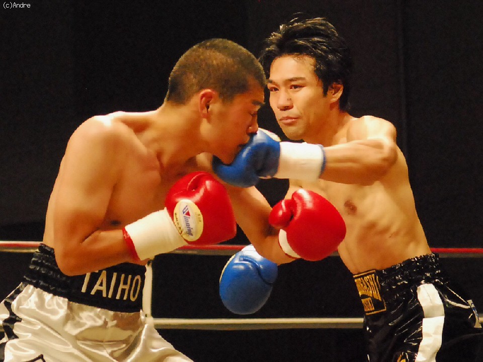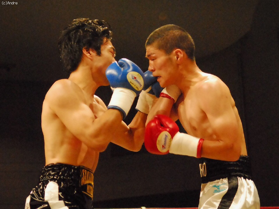 試合:金沢は左ジャブ、フックを的確にあてていく。対し長田は左ジャブから鋭く踏み込むと接近し右ボディを狙う。トリッキーな動きをみせる長田に対し金沢は的確にパンチを合わせポイントアウトしていく。中盤、長田が持ち前のしつこさを発揮し接近すると左右のボディを連打する。後半盛り返した長田の判定勝利。