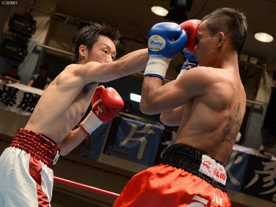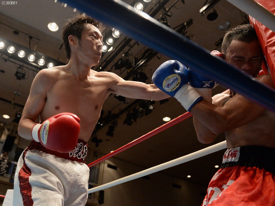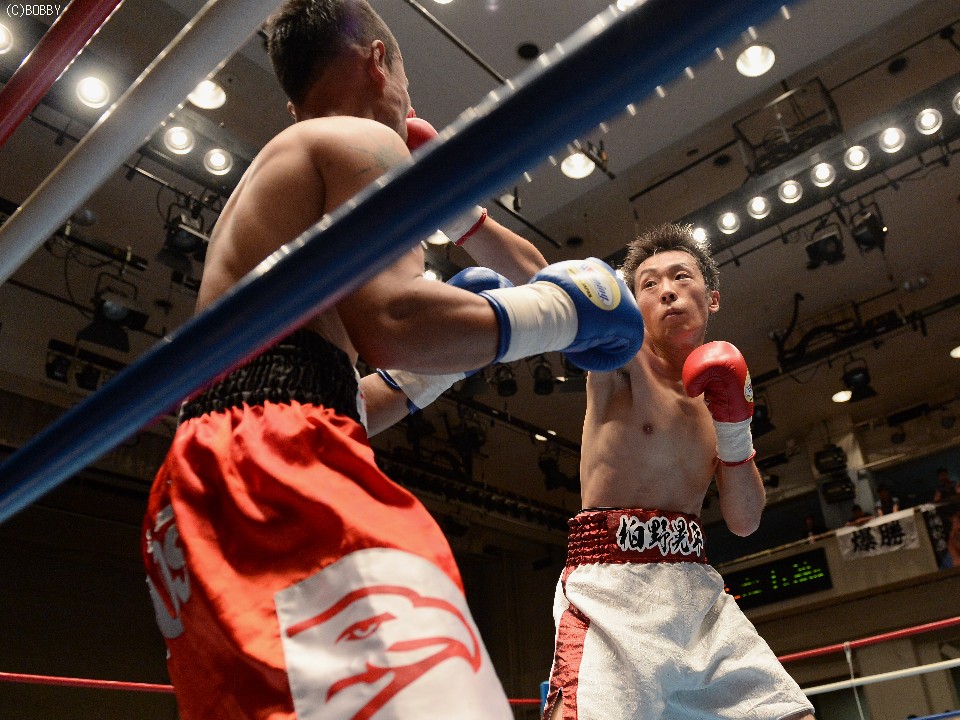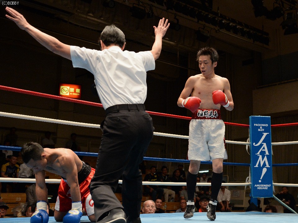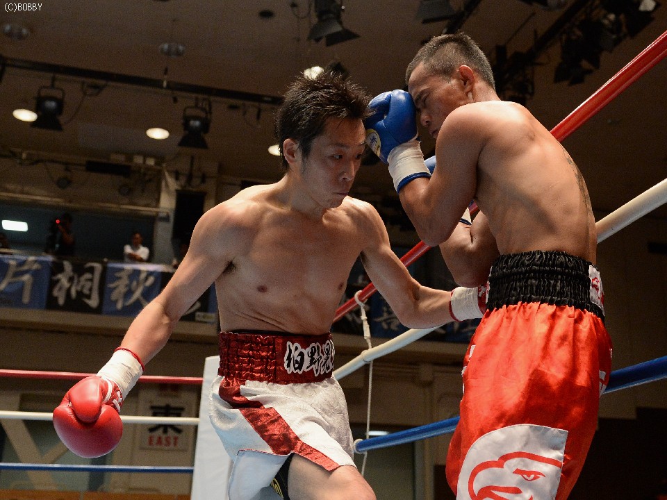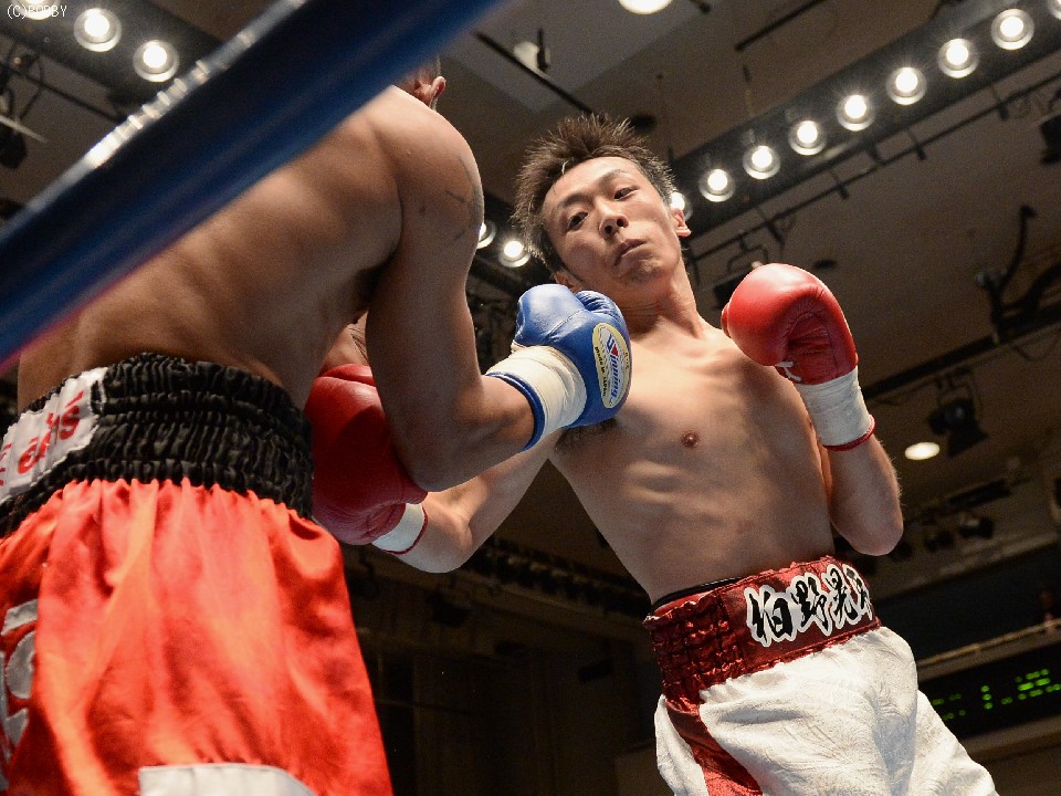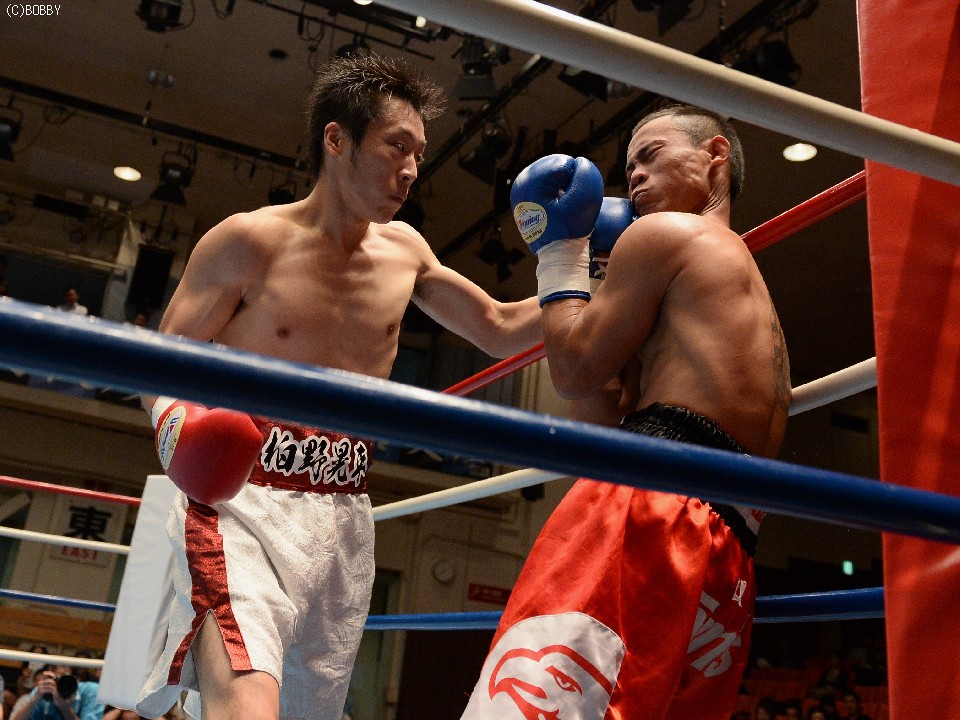 試合:東大卒の公認会計士、闘う'税理士ボクサー'柏野のデビュー戦。小柄なタイ人選手を迎えたサウスポーの柏野は、立ち上がりからスピードを生かした出入りのスタイルで右ボディ、左ストレートを的確にヒット。タイ選手に飛び込む隙を与えず、2Rもフェイントからの左ストレートを効かせ、1分過ぎに連打で詰めて防戦一方にさせスタンディングダウンを奪う。再会後に仕留めにかかると、最後は左ストレートで倒し、デビュー戦KO勝利を飾った。