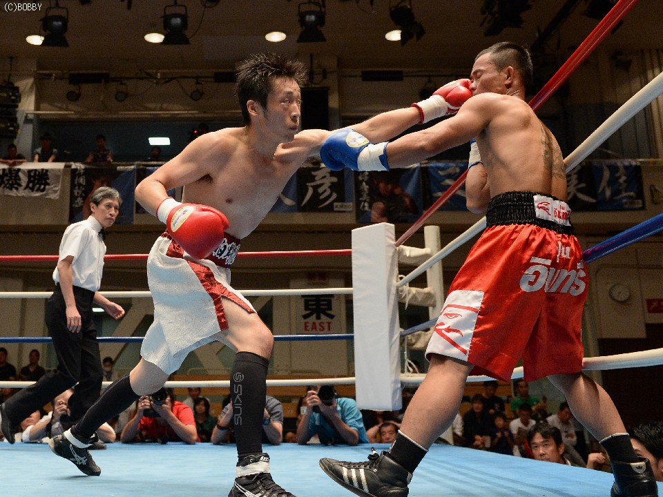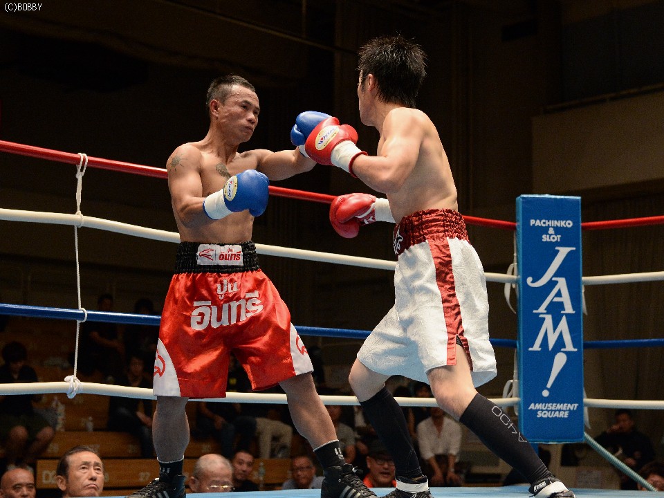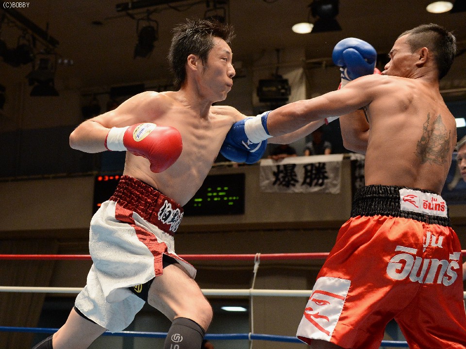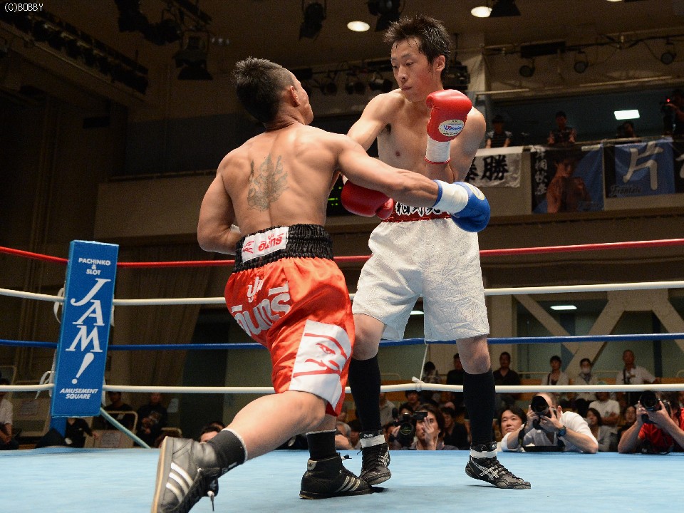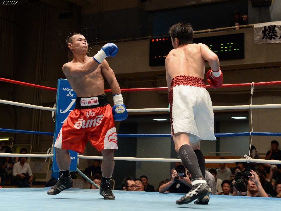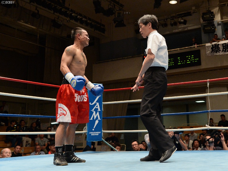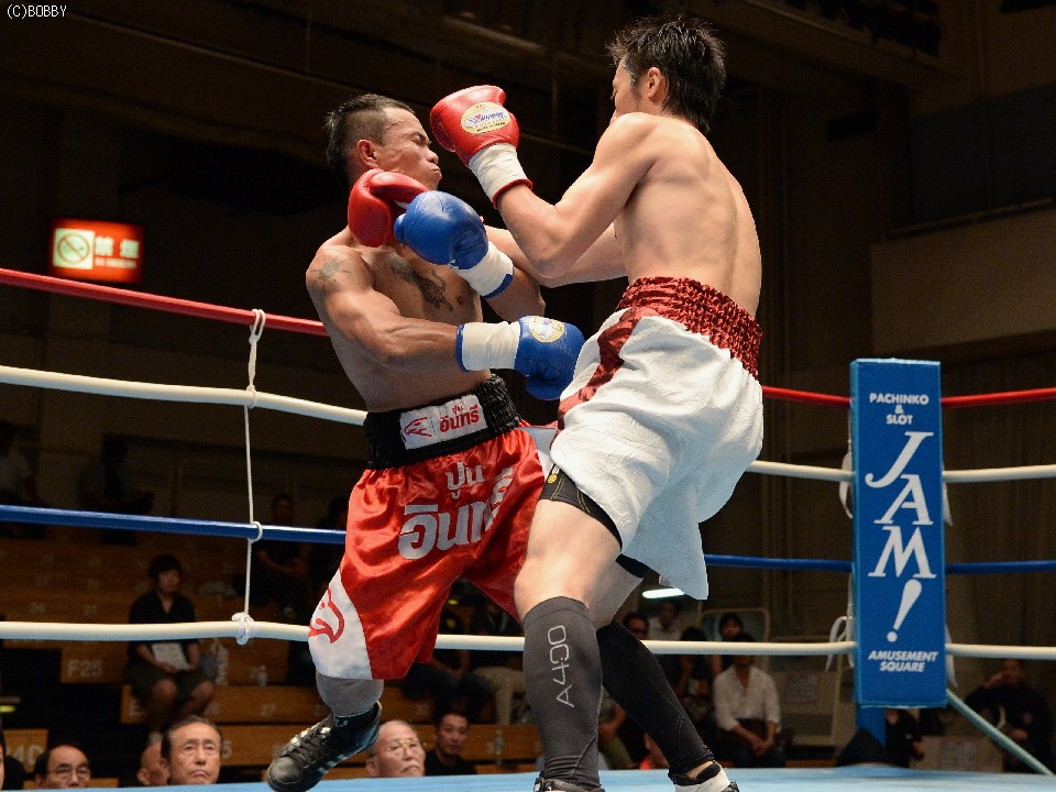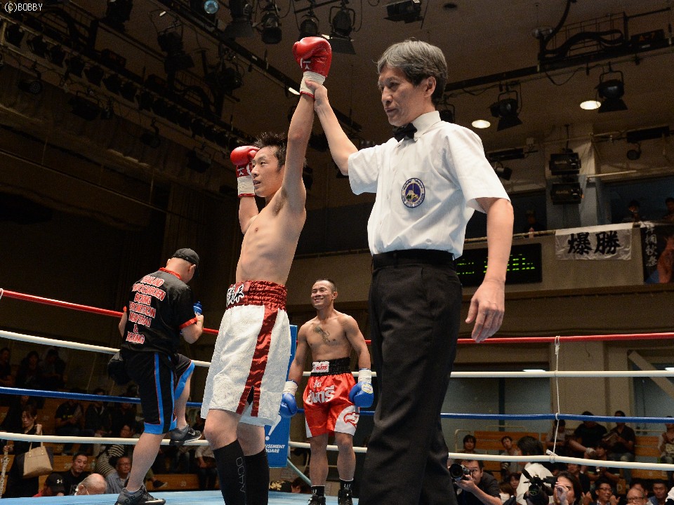 試合:東大卒の公認会計士、闘う'税理士ボクサー'柏野のデビュー戦。小柄なタイ人選手を迎えたサウスポーの柏野は、立ち上がりからスピードを生かした出入りのスタイルで右ボディ、左ストレートを的確にヒット。タイ選手に飛び込む隙を与えず、2Rもフェイントからの左ストレートを効かせ、1分過ぎに連打で詰めて防戦一方にさせスタンディングダウンを奪う。再会後に仕留めにかかると、最後は左ストレートで倒し、デビュー戦KO勝利を飾った。