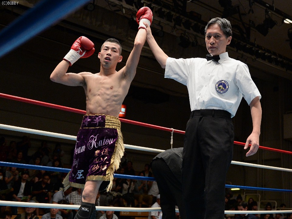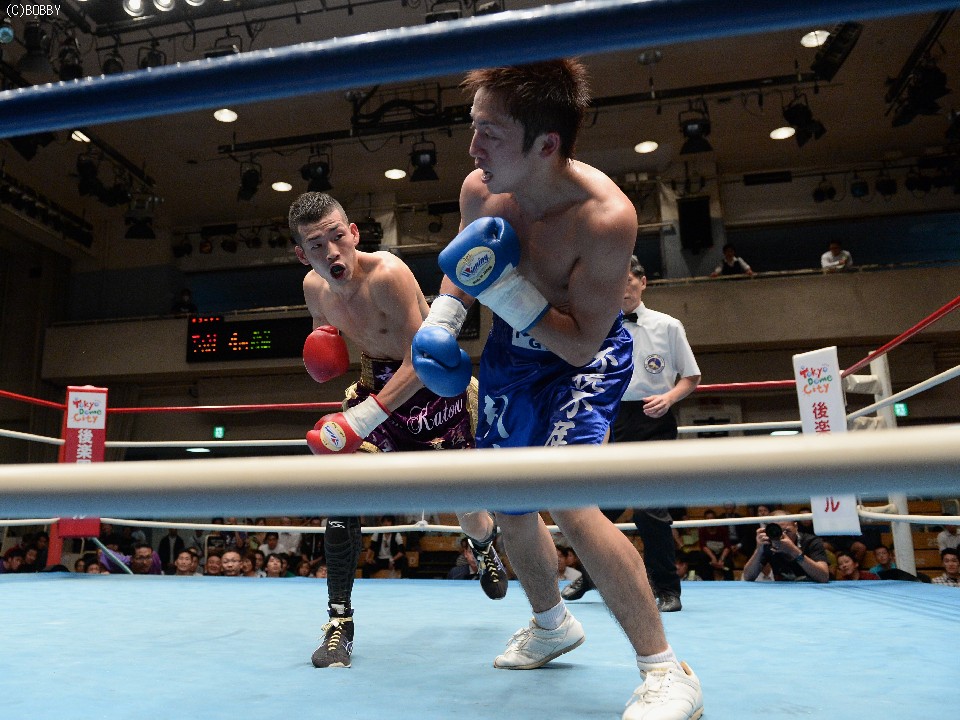 試合:サウスポー同士の一戦は、久保が引地に距離を取らせず伸びのあるジャブから左ストレートをヒットさせ、立ち上がりのリズムを掴む。引地も速い出入りを試みるが、このストレートを警戒しすぎてか、思いきった攻撃を仕掛けられず。一方、久保は3Rにワンツーで詰めると左ストレートを好打させるが、振り抜いた左は空を切る。引地も接近戦ではコンパクトな左右を返し、最終4Rは善戦してみせたが、判定はジャッジ2者が久保にフルマークをつけ、久保の完勝。決勝は5戦全勝(2KO)の市川とぶつかる。