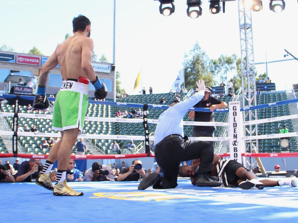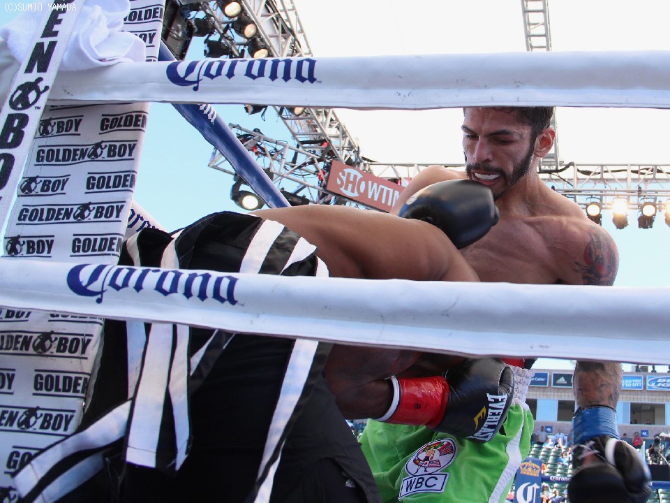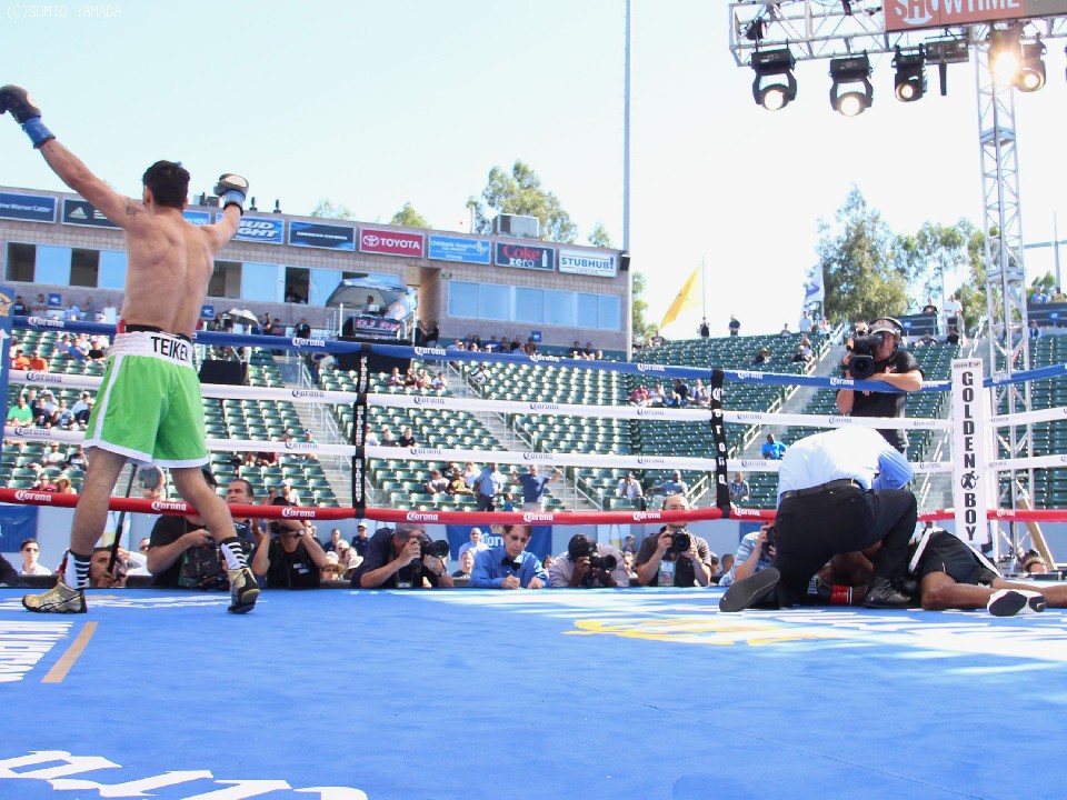 試合はトリプル世界戦を前にライト級8回戦として行われた。体格、経験、スピード、テクニックなどあらゆる面で勝るリナレスは2回、相手の出端に鮮やかな右をヒットして印象的なKO勝ちを収めた。年内にもWBC世界ライト級王座に挑戦することが確定的なリナレスは40戦37勝(24KO)3敗。12年3月にセルヒオ・トンプソン(メキシコ)に不覚をとってから6連勝(4KO)となった。テリーは39戦26勝(16KO)12敗1無効試合。