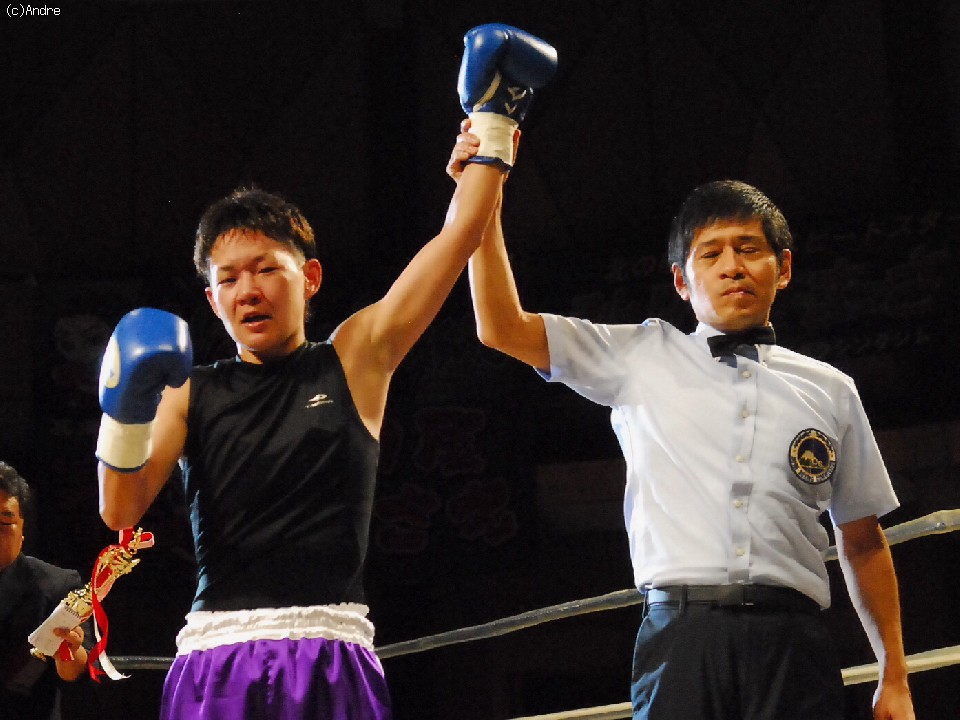 試合:両者とも序盤から打ち合いの展開。2R中盤、日向野の右ストレートが決まり山岸がダウン。しかしダメージ少なく立ち上がると、逆に山岸がラッシュを仕掛け、日向野が棒立ちになったところでレフェリーが割って入った。