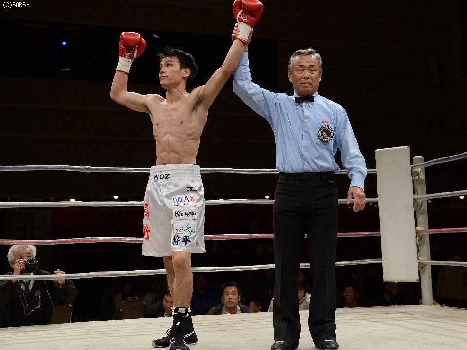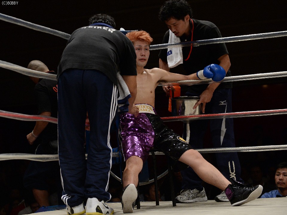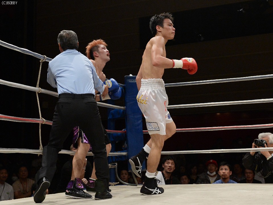 試合:右ジャブでペースをつかんだ大森が得意の左ストレートを見高に打ち込むと、ロープ際まで追い込みパンチをまとめてレフェリーストップ。