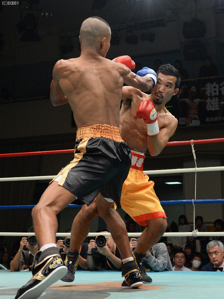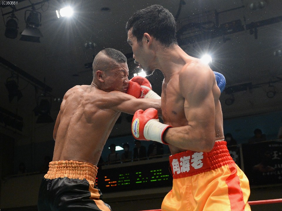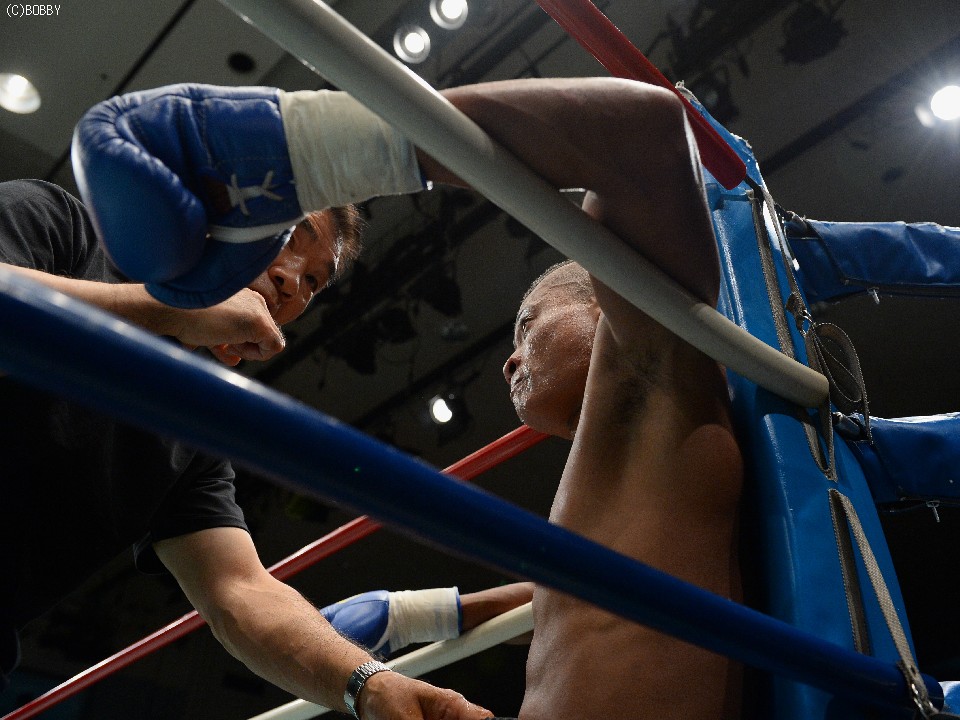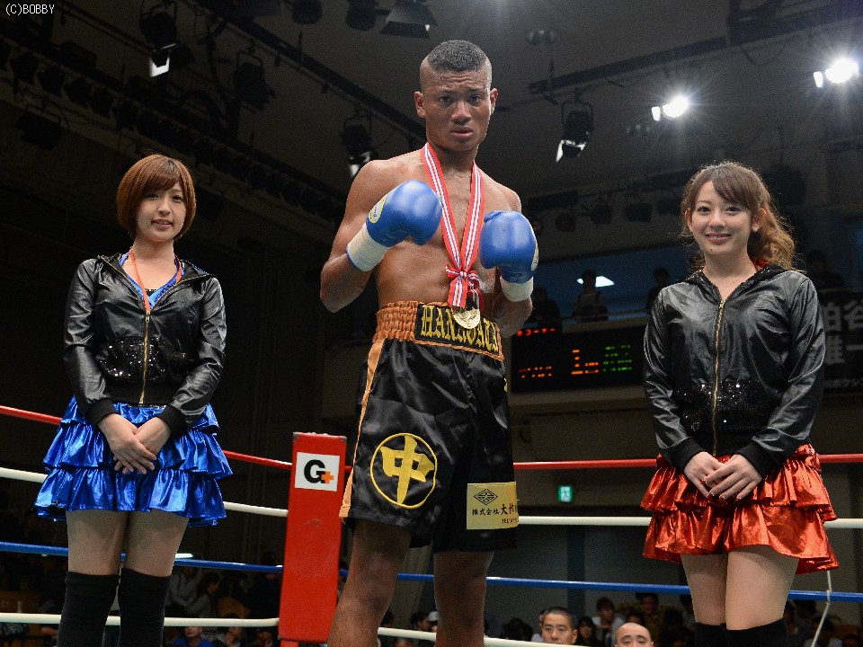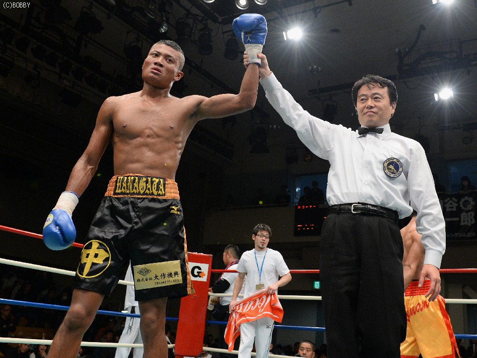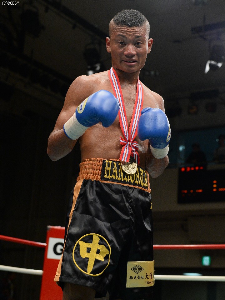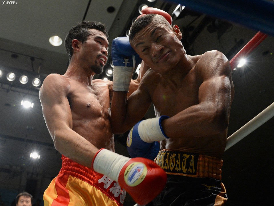 試合:サウスポー同士の立ち上がりは、長身の平岡が上体を柔らかく使い攻勢に出たが、その矢先に下げた右腕が仇となり、ショートフックを浴びダウン。ここは立ち上がり、ゴングに救われた平岡は、2Rはスピードを上げ、ジャブから組み立て直す。暫く膠着状態が続いたが、出入りを強め、脱力した右のリードから左を狙うと、4Rには中村の入り際に左右のボディを打ち込み、詰められても打ち下ろしの左で中村を遠ざける。平岡のボディに苦しめられ、疲れを見せ始めた中村だが、最後までプレスは止めず。要所で右フック、左ストレートを効かせたが、平岡に傾いた流れを引き戻すことはできなかった。ダウンポイントを跳ね返した平岡が苦戦すえ、5戦全勝で東日本新人王を獲得した。平岡「今日は申し訳ない試合をした。次の全日本までに課題を克服し頑張ります」。