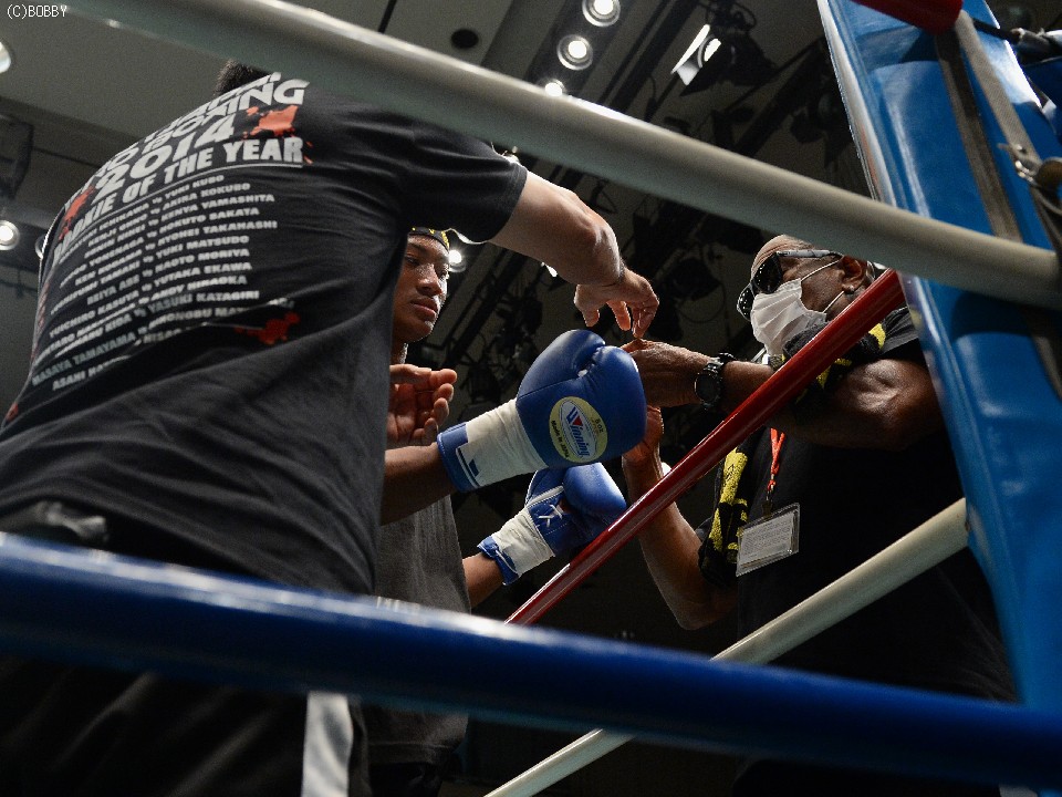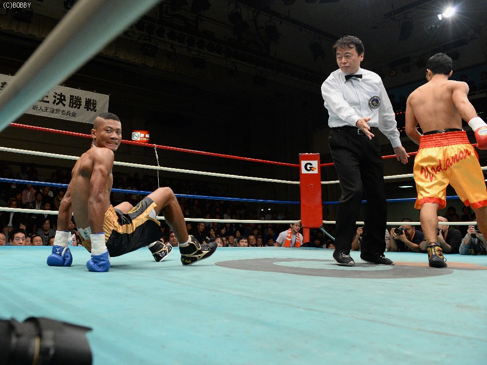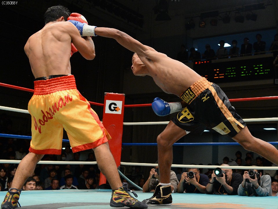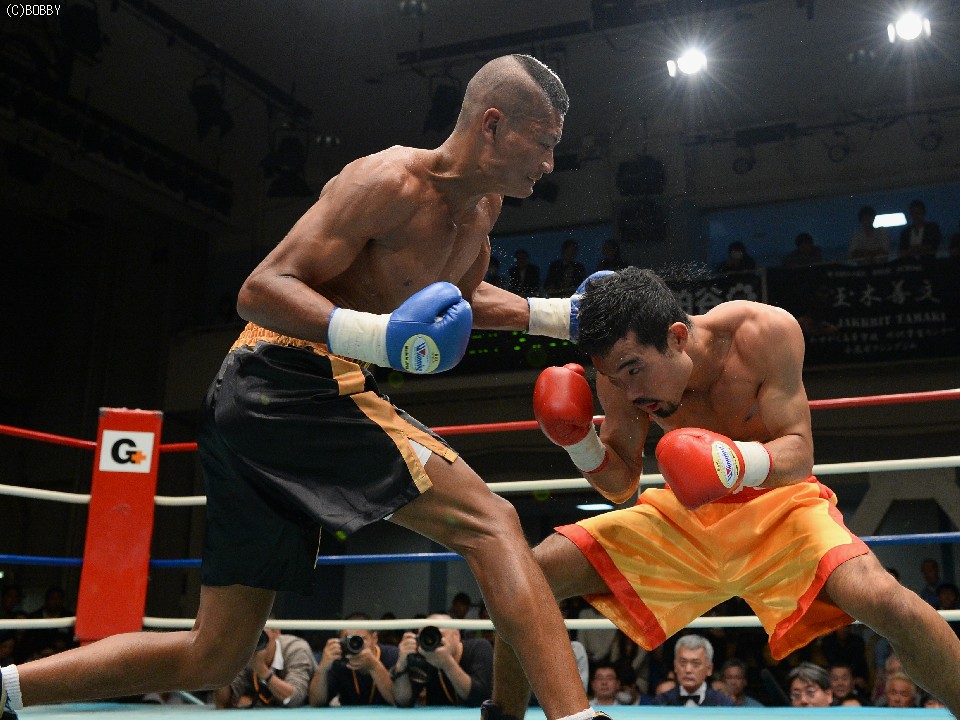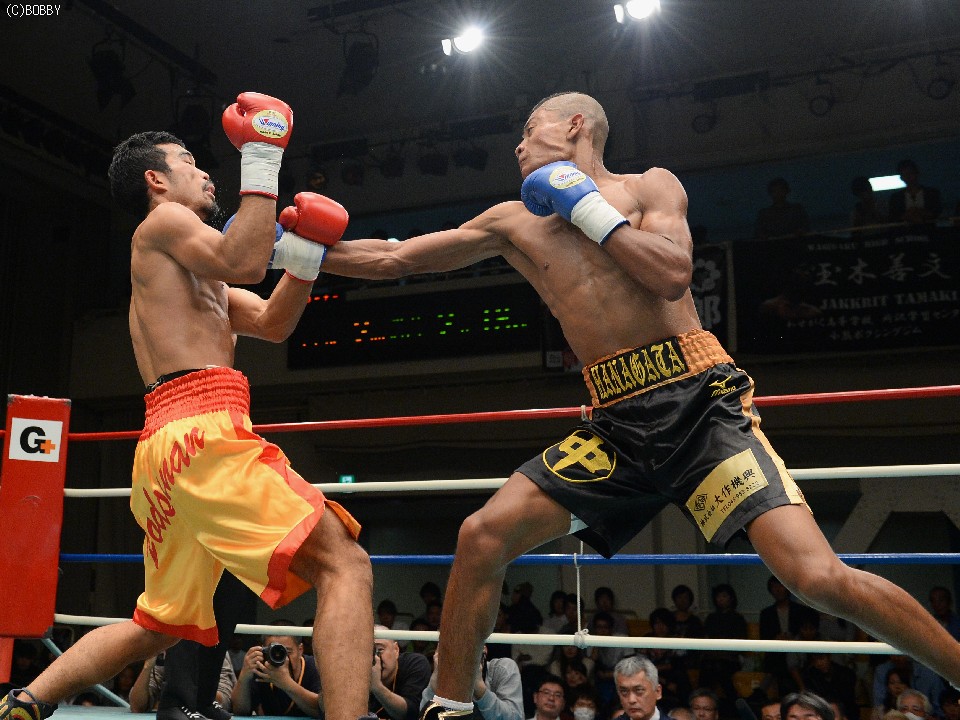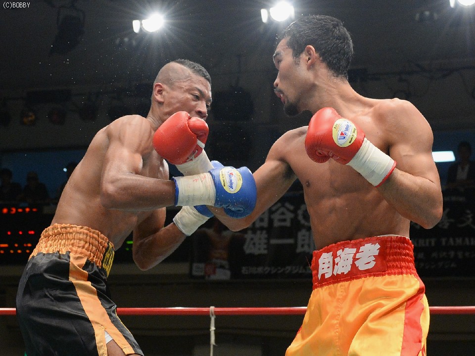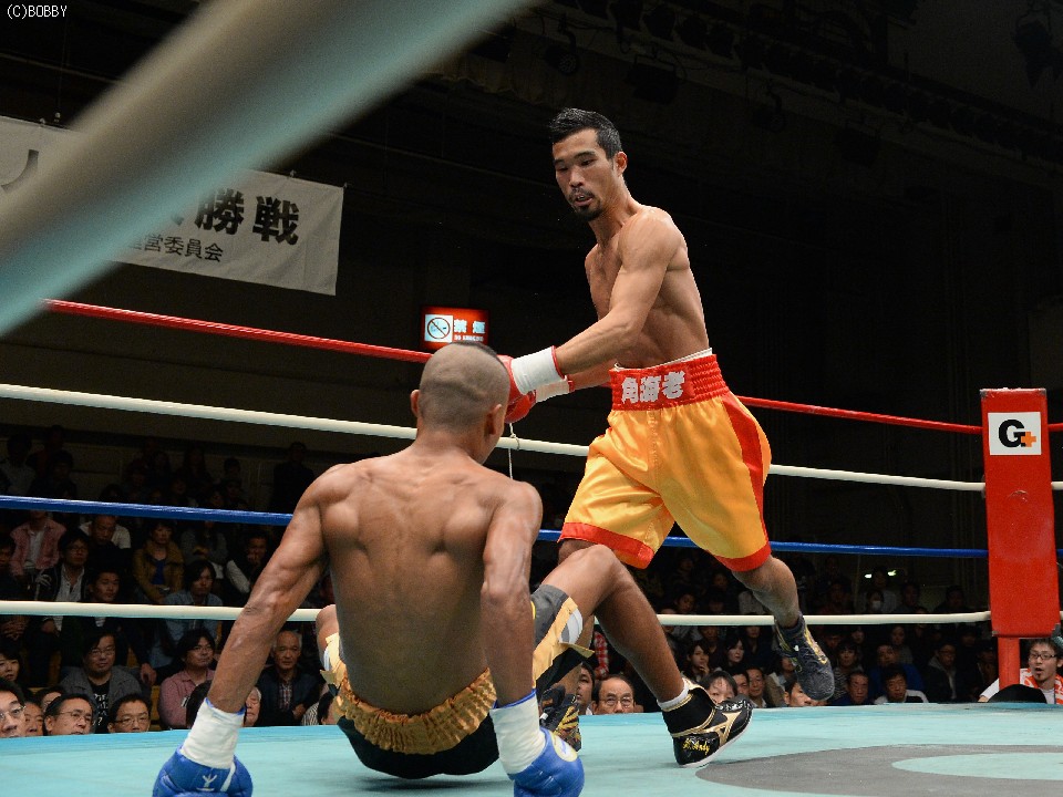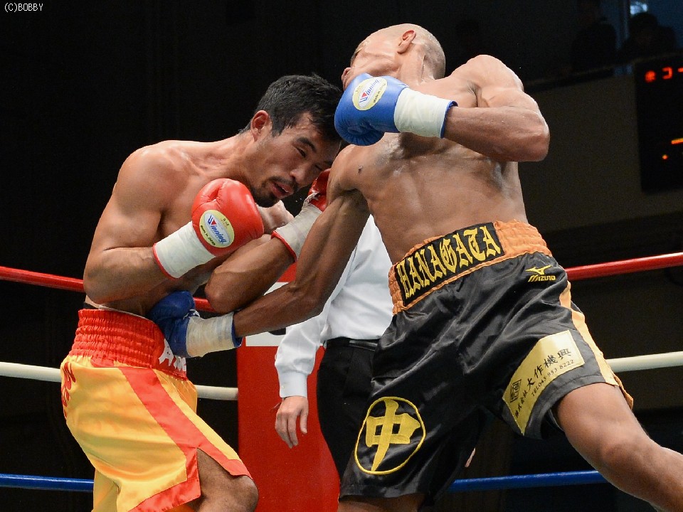 試合:サウスポー同士の立ち上がりは、長身の平岡が上体を柔らかく使い攻勢に出たが、その矢先に下げた右腕が仇となり、ショートフックを浴びダウン。ここは立ち上がり、ゴングに救われた平岡は、2Rはスピードを上げ、ジャブから組み立て直す。暫く膠着状態が続いたが、出入りを強め、脱力した右のリードから左を狙うと、4Rには中村の入り際に左右のボディを打ち込み、詰められても打ち下ろしの左で中村を遠ざける。平岡のボディに苦しめられ、疲れを見せ始めた中村だが、最後までプレスは止めず。要所で右フック、左ストレートを効かせたが、平岡に傾いた流れを引き戻すことはできなかった。ダウンポイントを跳ね返した平岡が苦戦すえ、5戦全勝で東日本新人王を獲得した。平岡「今日は申し訳ない試合をした。次の全日本までに課題を克服し頑張ります」。