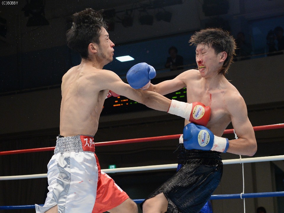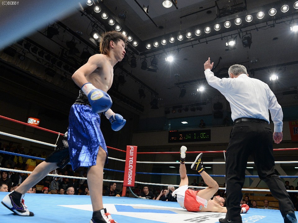 試合:立ち合いで距離を掴んだ齊藤は、初回2分過ぎに右ストレートでかべりーんの腰を落としたが、かべりーんも以降は相撃ち覚悟のワンツーで抵抗。2Rにはジャブからストレートで齊藤を仰け反らせると、2R後半にストレートでダウンを奪う。ここは立ち上がった齊藤は、下がらずにパンチを返したがストレートの受け方が悪く、最後はレフェリースリップとなった。