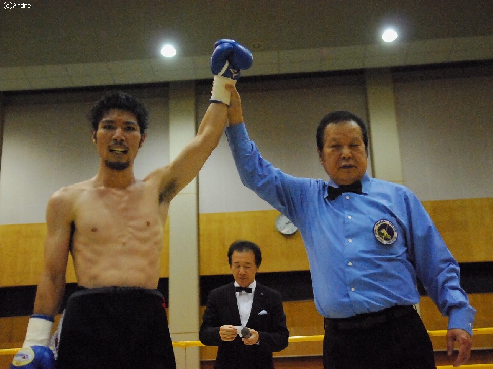 試合:サウスポーの此村は右ジャブを伸ばすと足を使い左ストレートを狙う。対し、見高はガードを固めプレスをかけると左フックをあてる。距離を支配したのは此村。見高は此村のヒット&アウェイに追いつけず。判定で此村の勝利。