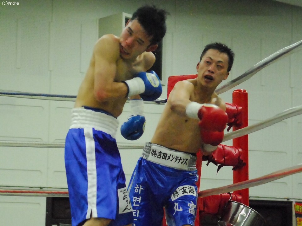 試合:諸はフェイントを使い左ジャブをあてるとコンビネーションを的確にあてていく。対し、大田は諸の打ち終わりに左ボディ、フックを狙う。中盤、両者足を止めて打ち合う展開、消耗戦となる。両者スタミナを切らせつつも最終ラウンドまで死力を尽くし打ち合う。判定で手数に勝った諸の勝利。