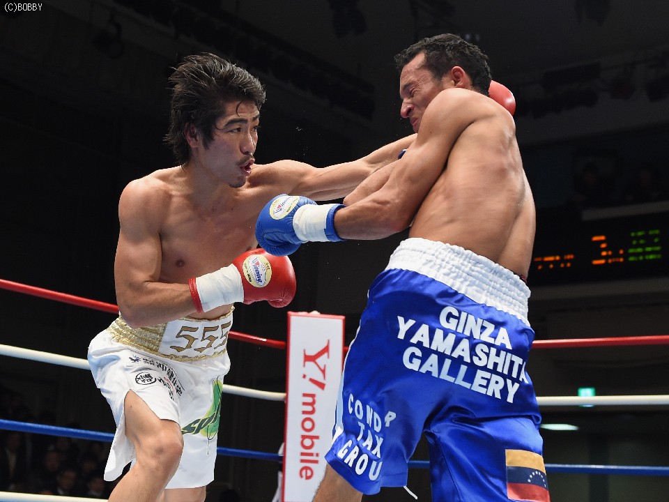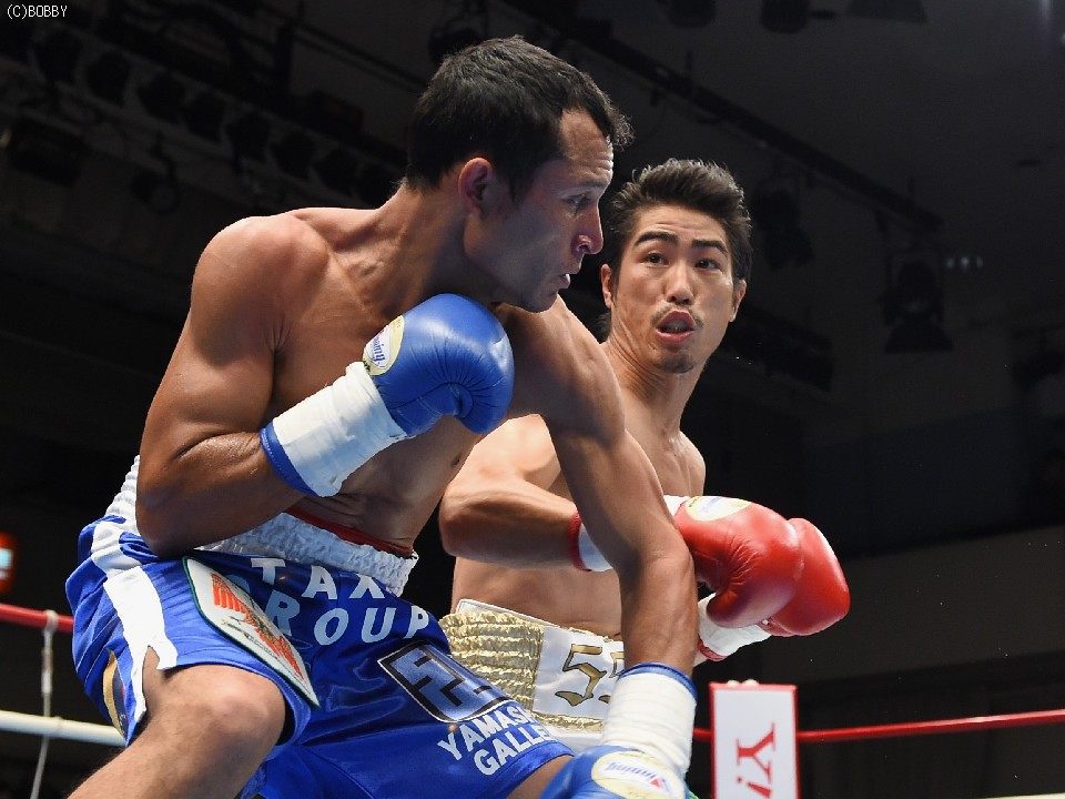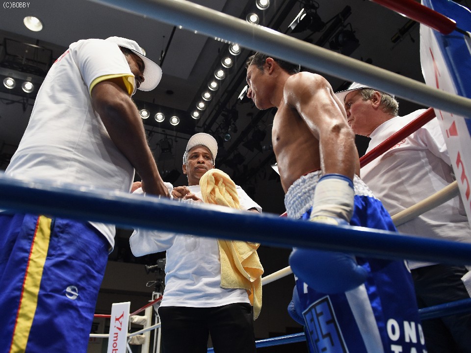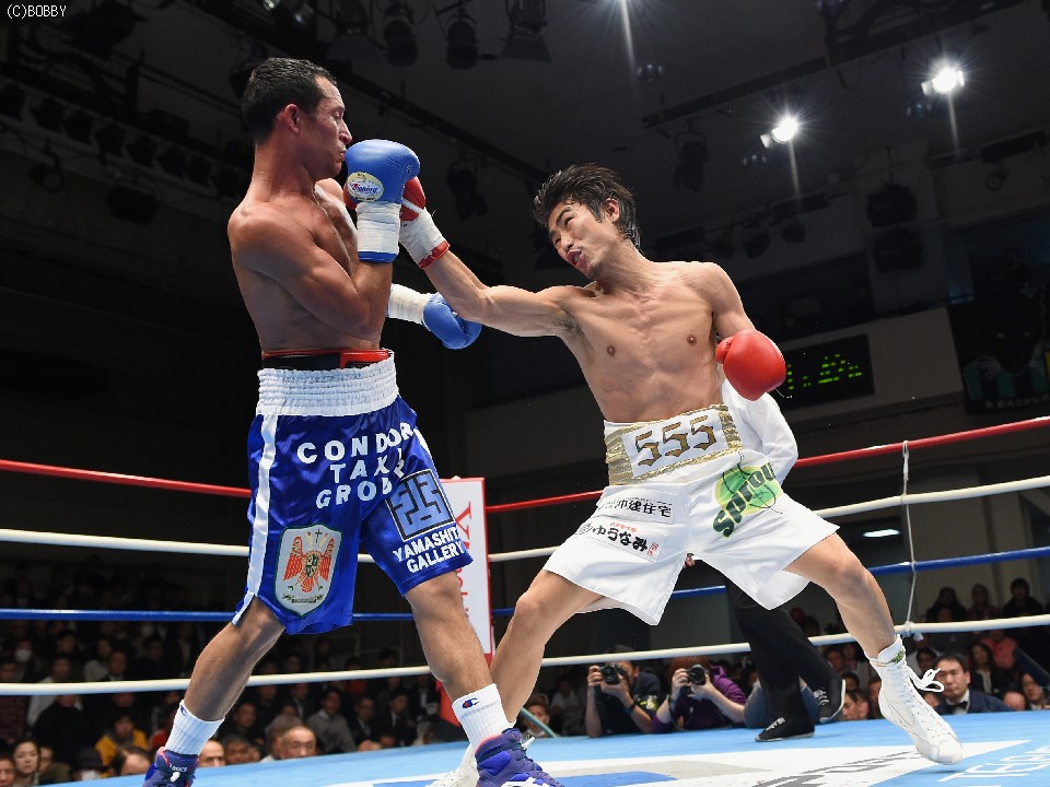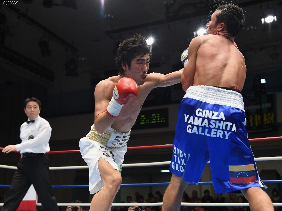 試合:1年4ヶ月ぶりに後楽園ホールのリングに立った34歳の翁長。相手方のセコンドには元2階級制覇王者イラリオ・サパタ氏(56)の姿があった。サウスポー翁長は右手で距離を測るとテランの打ち終わりに合わせ左ストレート突き刺すが、元世界ランカーもバックステップで追撃をかわしては右を上下に伸ばし、翁長にリズムを取らせず。3回には強烈なボディで翁長を追い込むなどメリハリのある攻撃を見せた。しかし、中盤を過ぎると翁長が距離を掴み、積極的に詰めては上下にパンチをまとめる。ボディをいやがったテランも攻撃の手は止めず、翁長の入り際に右アッパー、左フックを当てたが、流れを変えるには至らず。終盤も左ストレートでダメージを加えられ、ダウンこそ免れたがポイント差は明らかな内容だった。