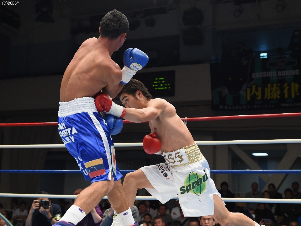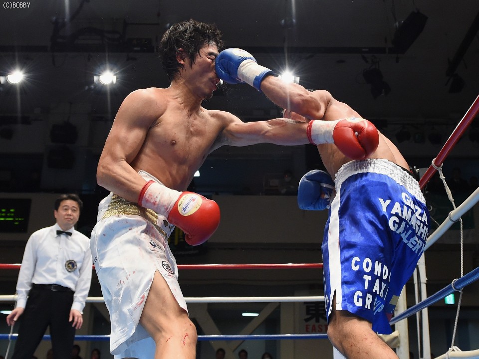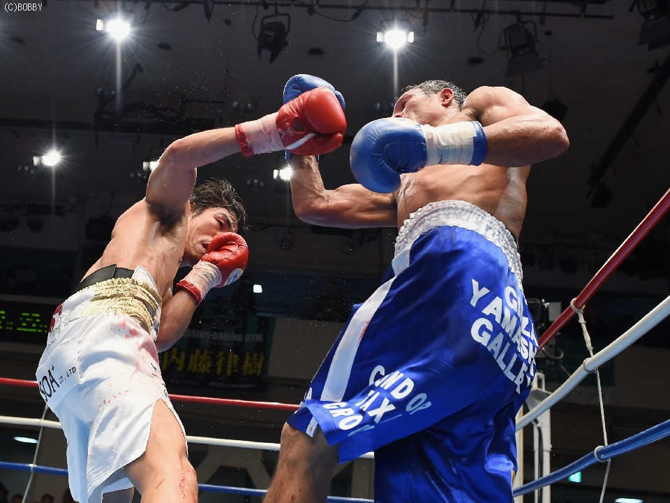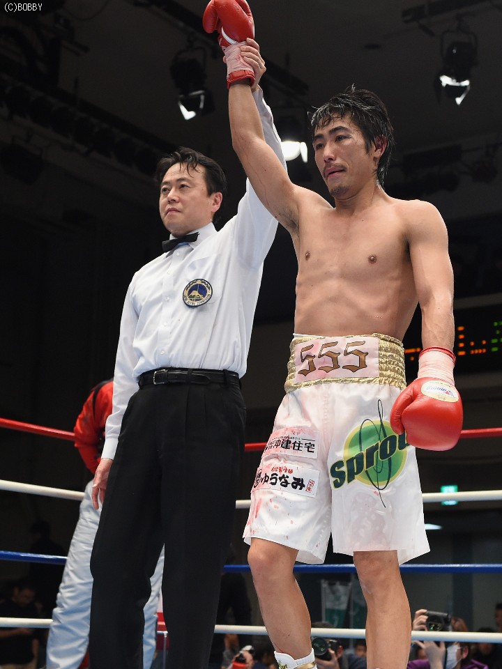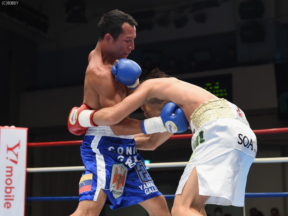 試合:1年4ヶ月ぶりに後楽園ホールのリングに立った34歳の翁長。相手方のセコンドには元2階級制覇王者イラリオ・サパタ氏(56)の姿があった。サウスポー翁長は右手で距離を測るとテランの打ち終わりに合わせ左ストレート突き刺すが、元世界ランカーもバックステップで追撃をかわしては右を上下に伸ばし、翁長にリズムを取らせず。3回には強烈なボディで翁長を追い込むなどメリハリのある攻撃を見せた。しかし、中盤を過ぎると翁長が距離を掴み、積極的に詰めては上下にパンチをまとめる。ボディをいやがったテランも攻撃の手は止めず、翁長の入り際に右アッパー、左フックを当てたが、流れを変えるには至らず。終盤も左ストレートでダメージを加えられ、ダウンこそ免れたがポイント差は明らかな内容だった。