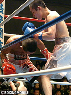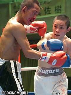 試合:昨年B級トーナメント優勝の村中はそろそろ日本ランク入りを狙いたい。序盤、大嶽のボディを強烈な左右ボディ、右アッパーで攻める村中。一方、接近戦に持ち込みたい大嶽は有効打を当てられても構わず前に。4R、村中のヒットで大嶽は鼻と口からかなりの出血。それでも頭を低くし前に出る大嶽に村中は引いてしまう場面も。接近での打ち合いに付き合いリズムに乗れていなかった村中は5R、離れて自分の距離を取り戻すと少しずつリズムを掴み始める。反対に大嶽は距離が遠くなった為にパンチが大きくなり、村中に捌かれてしまう。終盤、村中は力のあるパンチで手数をまとめるが、大嶽も脅威の粘りで持ちこたえると村中をコーナーに追い込む場面も。粘る大嶽に倒せないあせりが出る村中。すると村中も足を止め、大嶽と激しい打ち合いに出る。大嶽は最後まで挫けない強さを見せたが、激戦の末、判定で村中が勝利した。