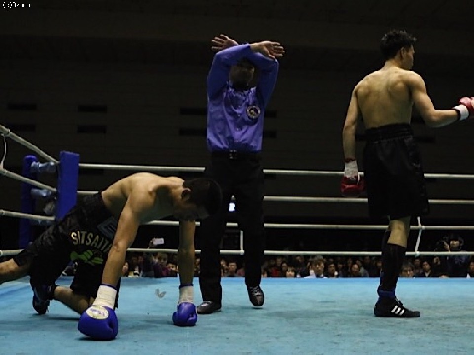 試合:デビュー戦の前田は落ち着いた様子でワンツーをペーンチャイに打ち込んでいく。対してペーンチャイはノーモーションの右を伸ばすが距離が合わず空を切る。2R中盤、前田の左右のボディに思わず膝をついたペーンチャイが1度目のダウン。立ち上がるもさらに右ストレートを打ち込む前田に崩れ落ちたペーンチャイの様子をみたレフェリーが試合を止めた。