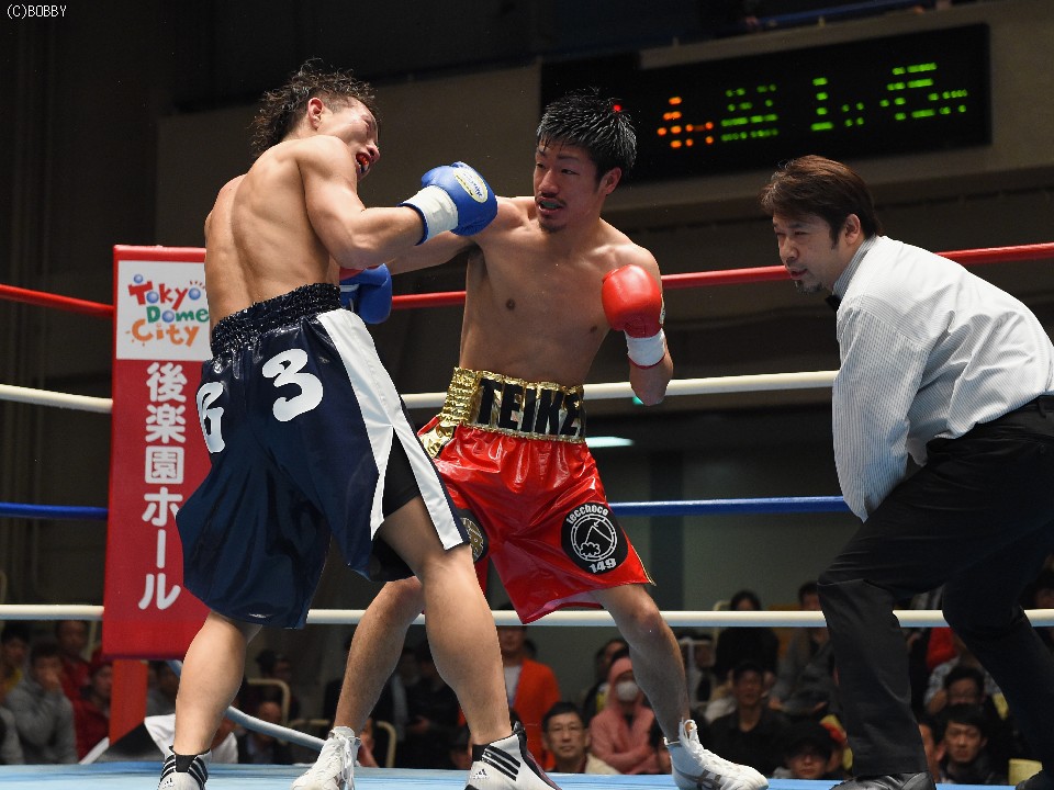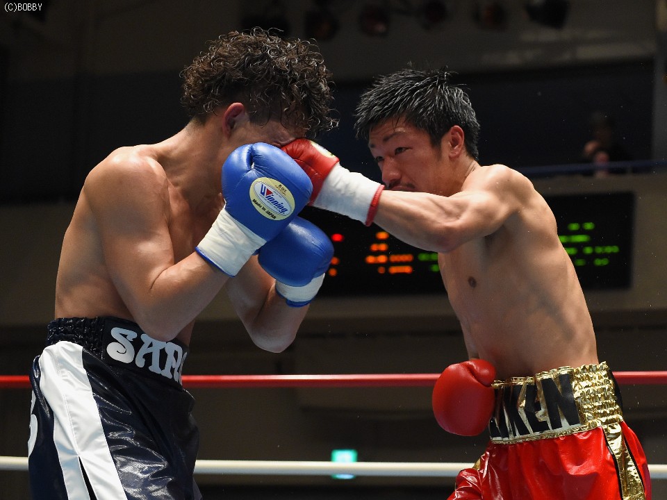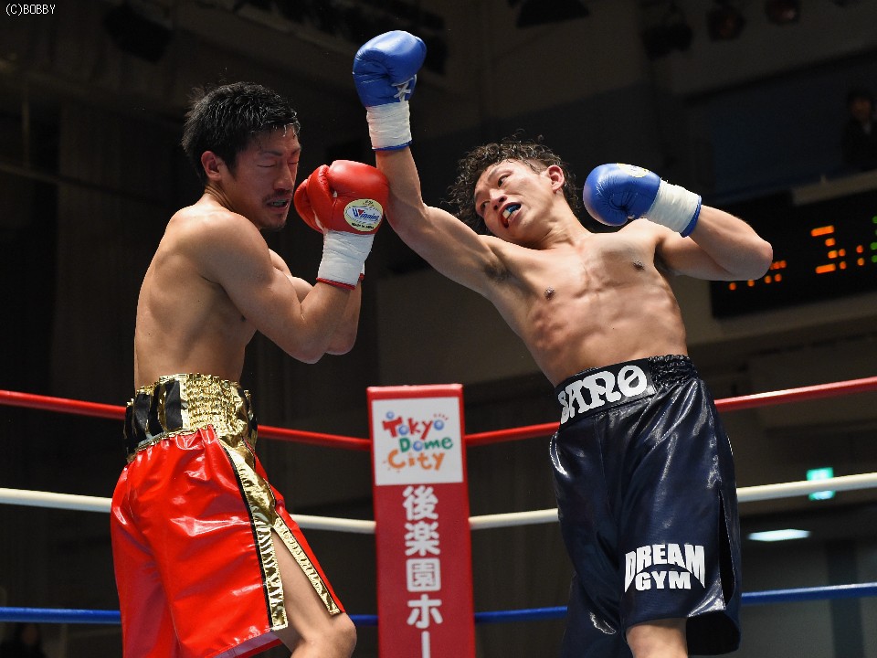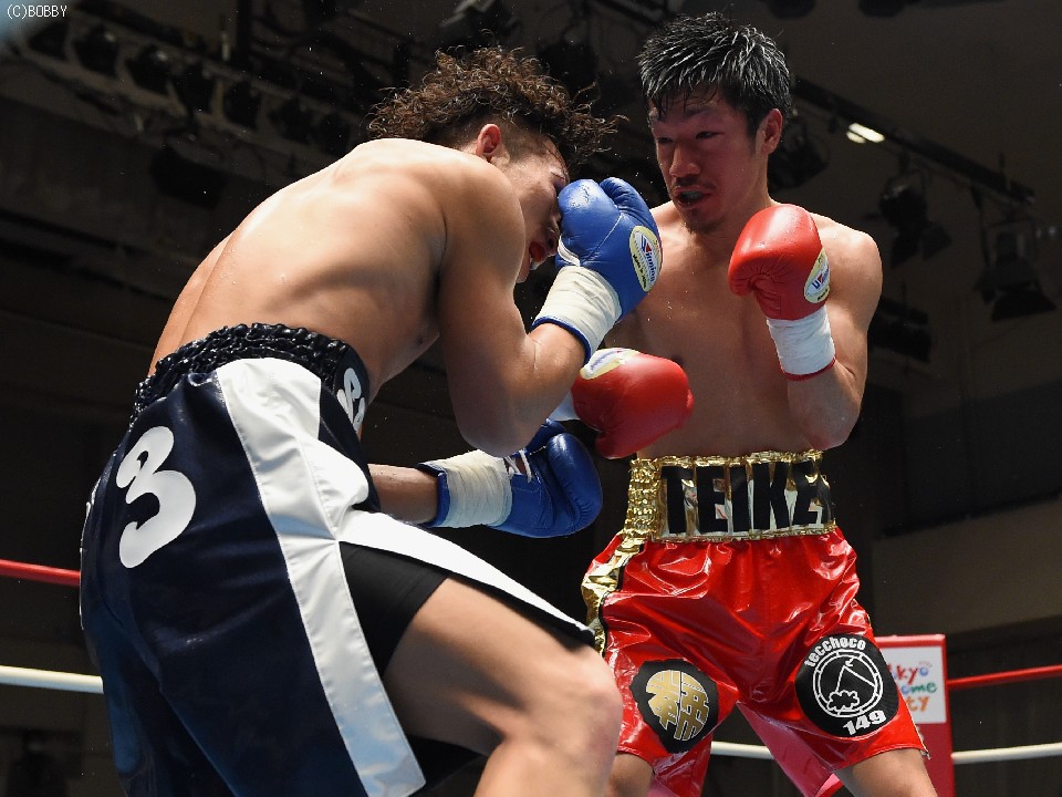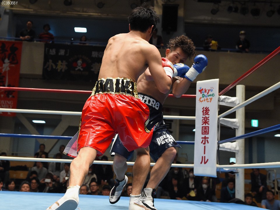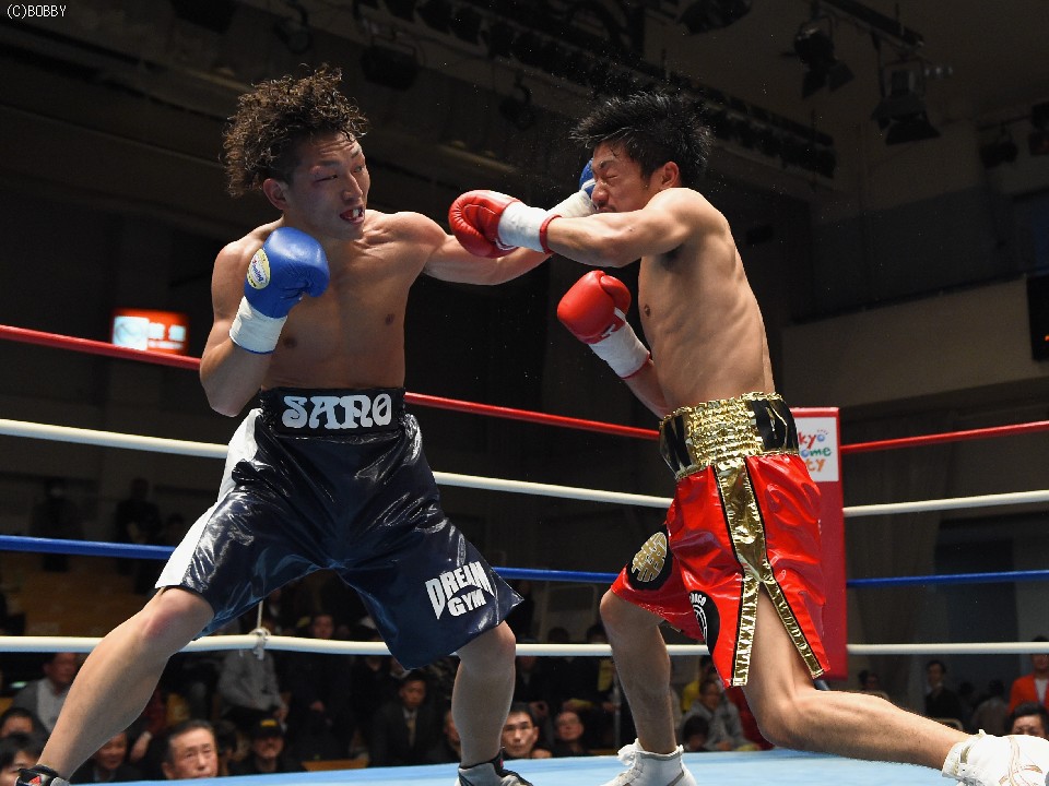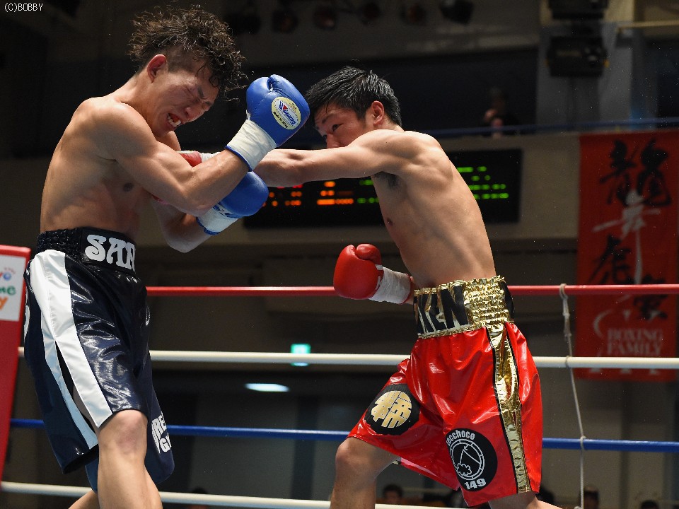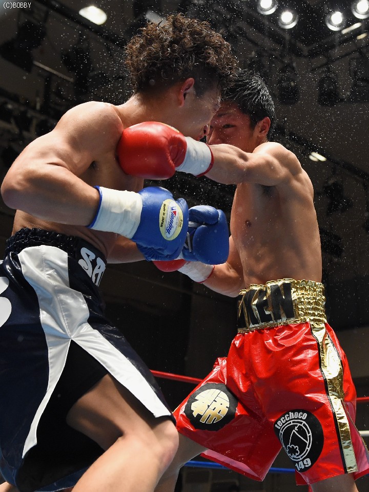 試合:「大樹」コールに後押しされてサウスポー舟山が鋭い踏みこみからワンツーをヒット。佐野も負けじと打ち合いに応じるが、舟山の左ストレートでダウンを喫する。ダメージは残るものの強気な姿勢は崩さず、右アッパーで舟山の腰を落とさせる。2Rになっても我慢比べのような展開が続く。KO狙いの激しい打ち合いの中、佐野の上下への力強い連打が上回る。負けん気の強い両者の戦いぶりに会場もヒートアップ。4R、手数の減った佐野に舟山の左ストレート、右フックがヒットするが佐野も連打で応戦。採点の難しい展開のまま試合終了。ジャッジは 1-0のドローだったが優勢点で舟山がわずかに上回り、勝ち上がった。