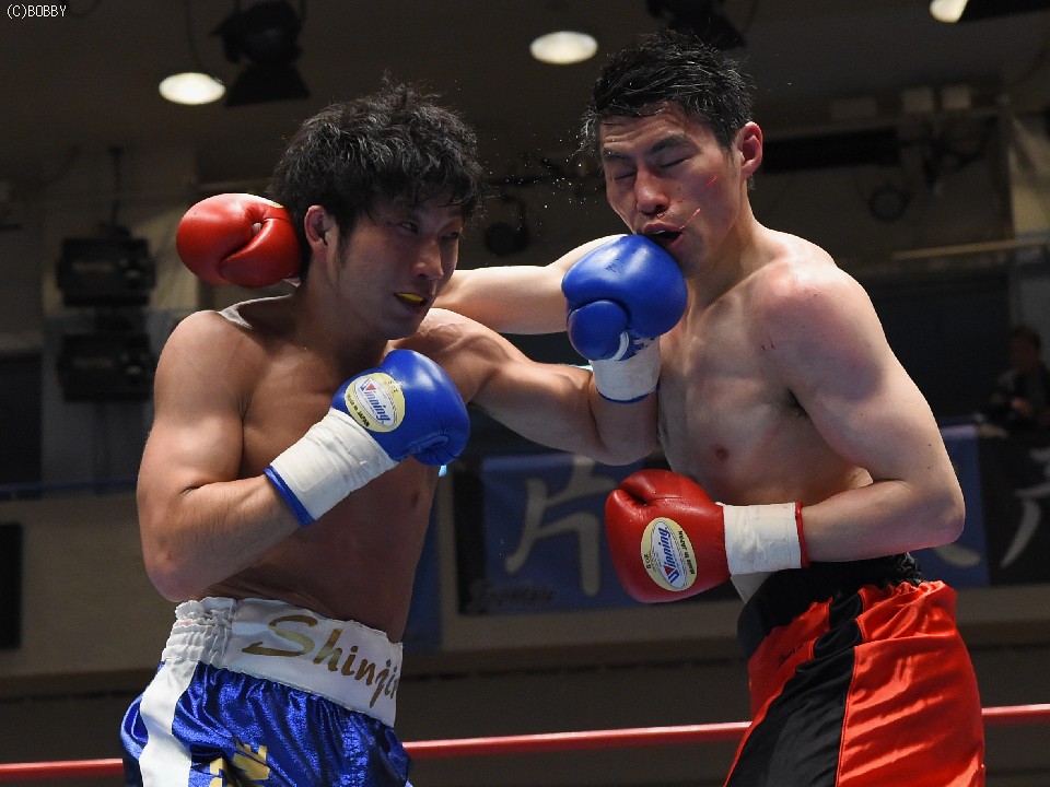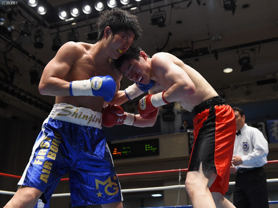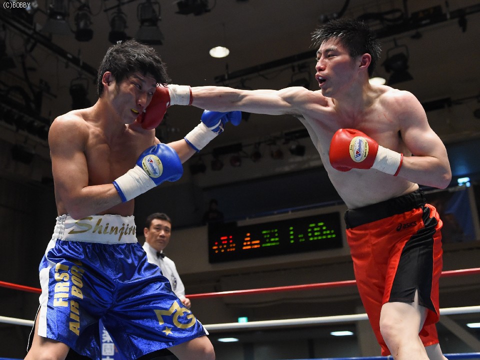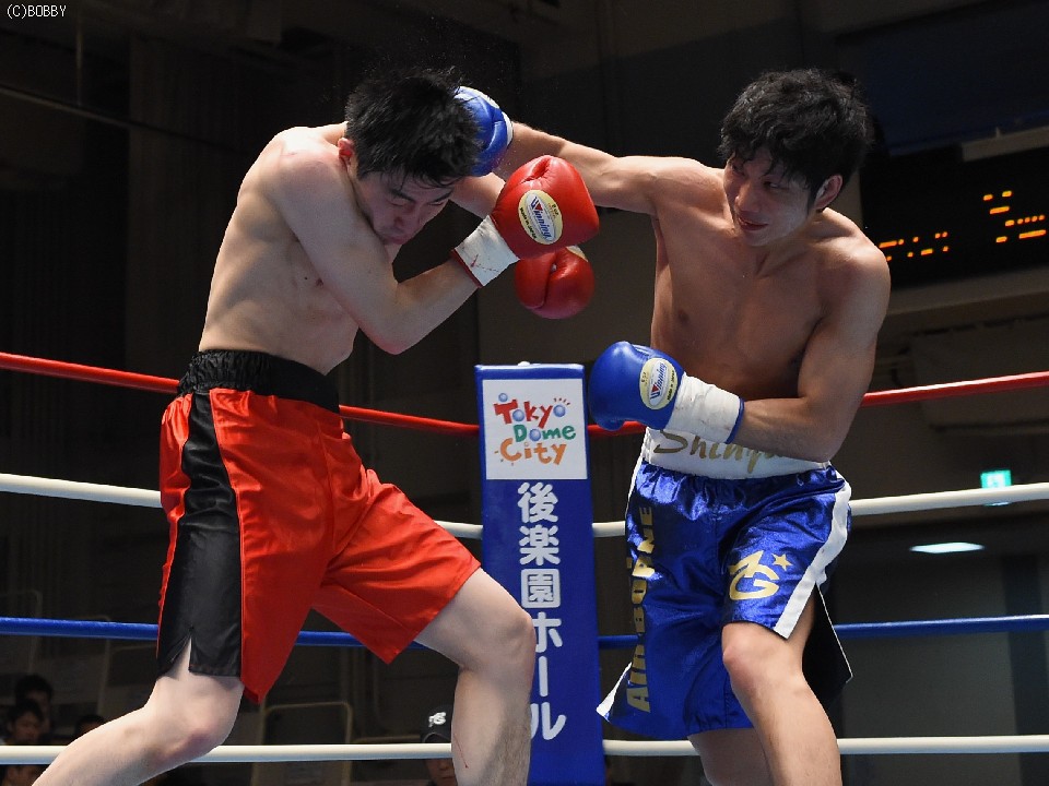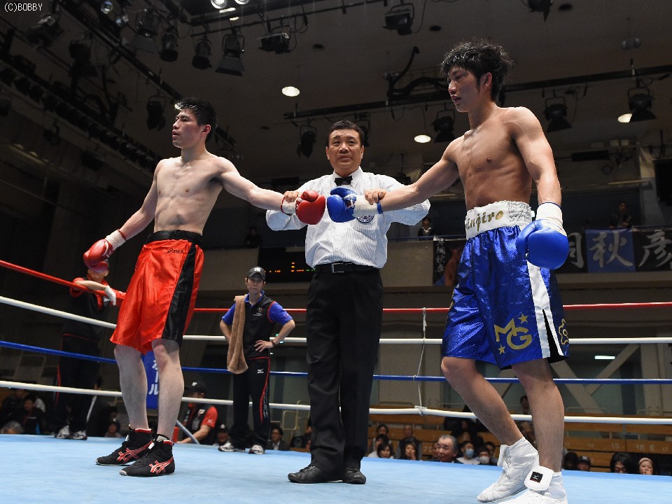 試合:立ち上がり、ジャブから右をつなげたい両者だがパンチの的確さは河田が上回り右ストレートをヒットしてリズムをつかむ。さらに攻勢をかける河田だが、ガードが下がったところに中野の右カウンターが決まり試合を五分に戻す。両者、決定打が出ないまま迎えた4R、ポイントを取りにアグレッシブに攻めにいったが、最後まで採点の難しいラウンドが続いた。公式結果は河田の1-0の引き分けとなるも残りの二者は河田を優勢とし、トーナメントを勝ち上がった。