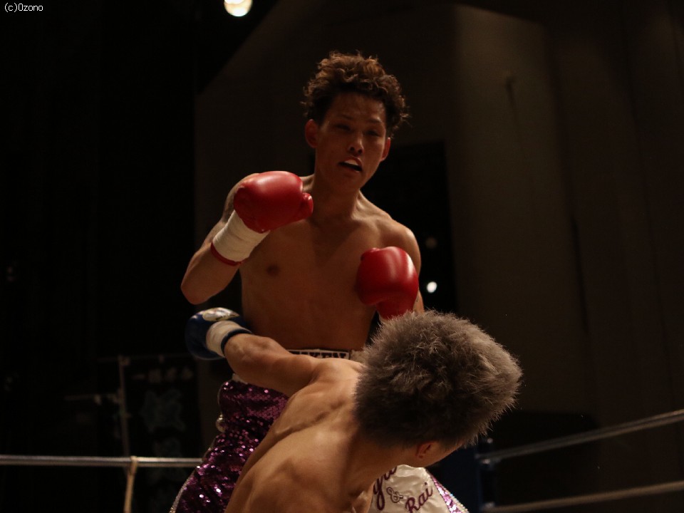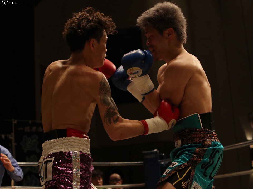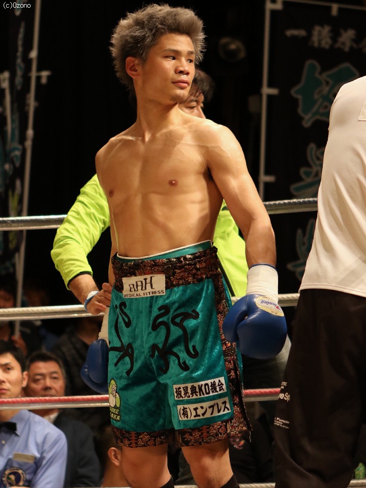 試合:新人王同士の戦い。序盤から距離がかみ合い打ち合いの展開。1R中盤、京口の左右のフックが決まり坂がダウン。坂はダメージを残しつつ立ち上がりクリンチでこのラウンドをしのぐ。逆に2R、坂はスピードを上げ左フックを京口こめかみにヒット、京口の膝が揺れるがクリンチでしのぐ。3R、坂の左がヒットし京口がダウン。立ち上がったがダメージが深く再度坂の左右のフックが決まったところでレフェリーが割って入り試合終了。坂がTKO勝利。