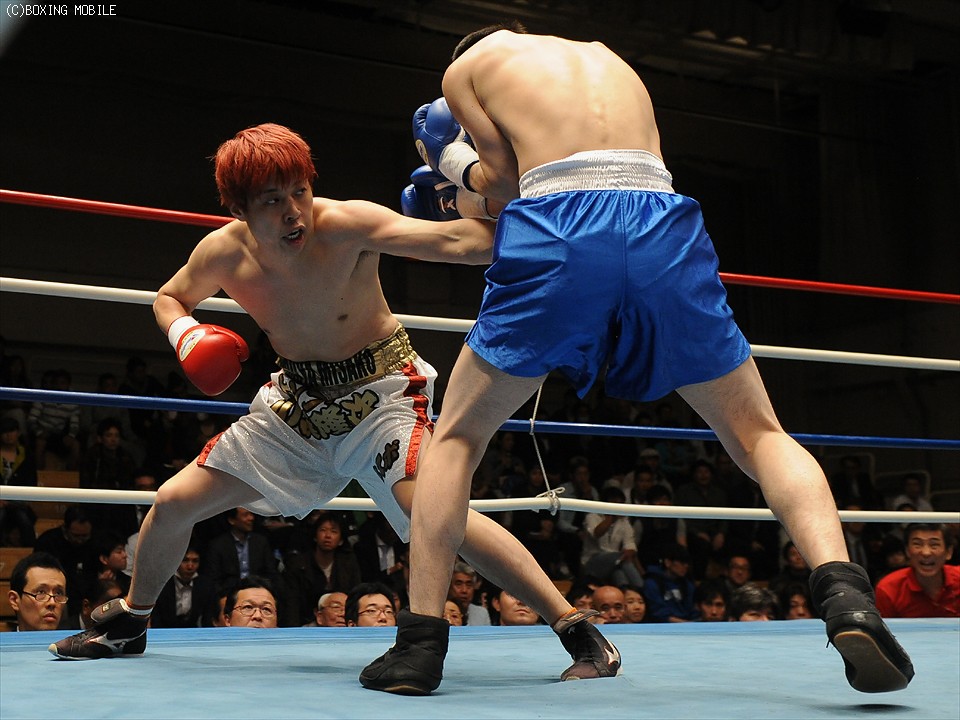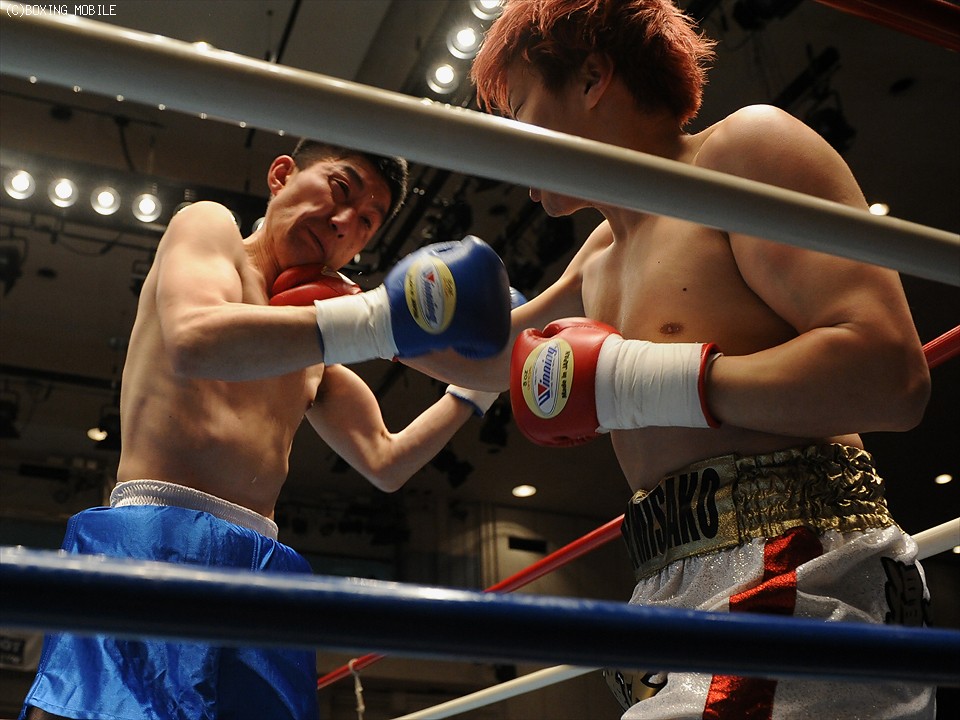 試合:ガードを固めながら前に出る水戸に、小浜はジャブから左フックで腰を落とさせる。2R、水戸がボディに的をしぼり連打を繰り出すのに対し、小浜もワンツーで応戦。3R、水戸のボディが功を奏して小浜は手数が少なくなり連打を許してしまう。4R、小浜が開始から怒涛の連打でダメージを与えるが、何としても初勝利をあげたい水戸も歯を食いしばりながら対抗。しかし有効打は小浜が上回りダウン寸前まで追い込んだところで試合終了のゴングが鳴り響いた。