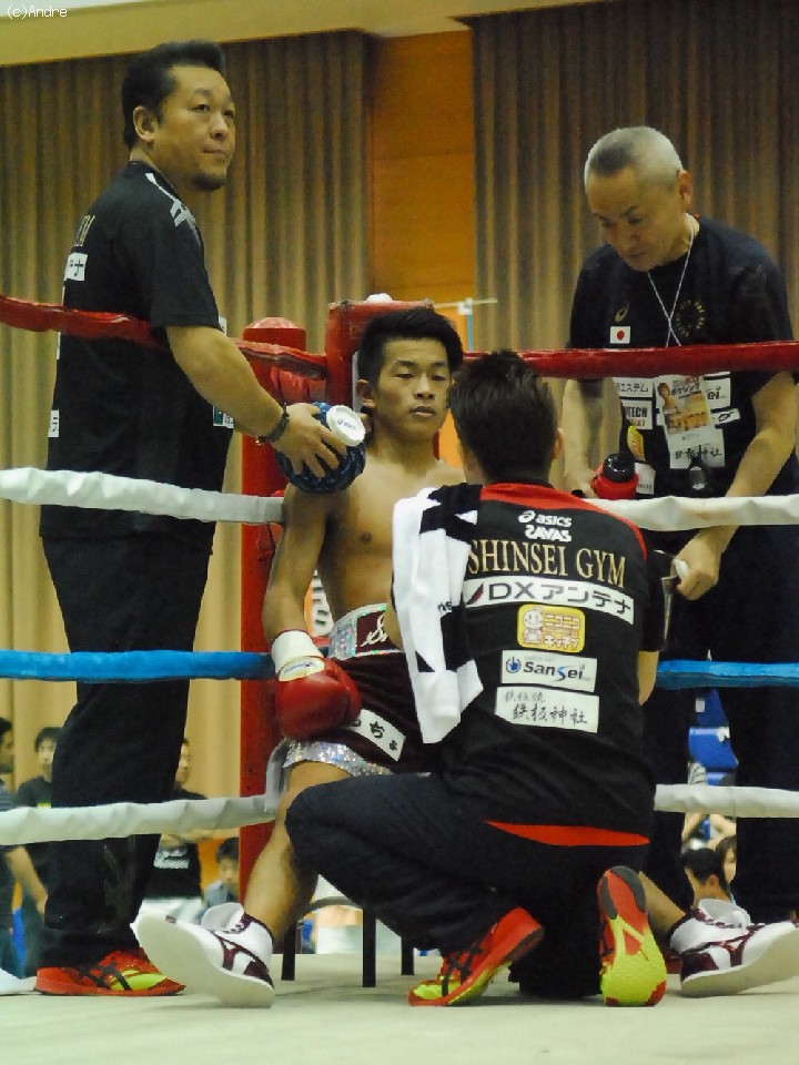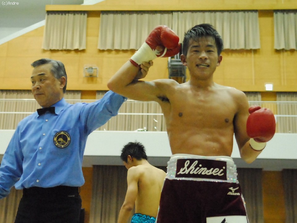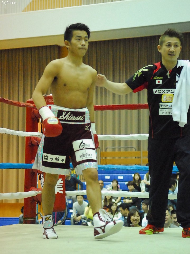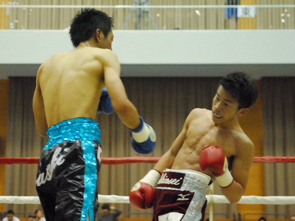 試合:川島はジリジリとプレスをかけワンツーを狙う。対して、長身の佐々木はジャブを突くと踏み込んでアッパーをあてていく。中盤、距離を支配したのは川島。ジャブを突くと鋭く踏み込みストレート上下に散らす。対して、佐々木はジャブを被弾しながら大きな右を狙う。後半、佐々木はプレスを強め左フックを狙うが川島のボディワークに交わされる。終始ペースを渡すことなく川島が判定勝利。