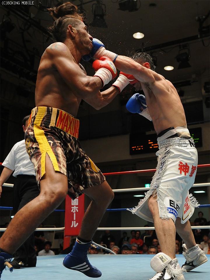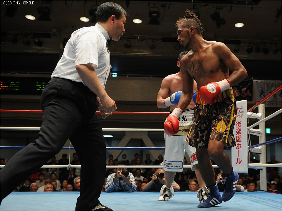 試合:日本ウェルター級1位まで登りつめた大川がジャブで主導権を握り、積極的に攻める。しかしナハクもキレのある右ストレートをカウンターで狙う。2R、ストレートの相打ちになるが大川がさらに距離を詰めて右ストレートを決める。するとラウンド残り20秒、コーナーに追い込んで連打でダウンを奪う。3R、劣勢のナハクが意地を見せる。叫びながら左右のアッパーを打ち込むと大川は腰を落としてしまい、ついにダウンを喫してしまう。しかし4R、スタミナが切れ完全に手数が減ったナハクに大川はボディの連打で巻き返しを図る。6R、自ら下がるナハクに大川は追撃するが右アッパーももらってしまう。7R大川は被弾しながらも前に出て連打を繰り出すとナハクは諦めるようにこの試合2度目のダウン。そして最終8R、最後までkoを狙う大川がロープに詰めるとレフェリーは試合に終止符を打った。ko負けの危機から逆転した大川はこれで5連勝を飾った。