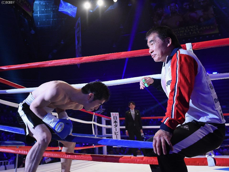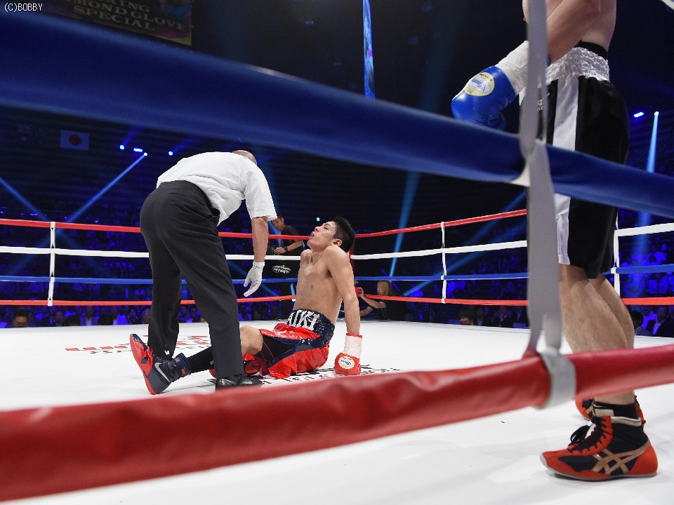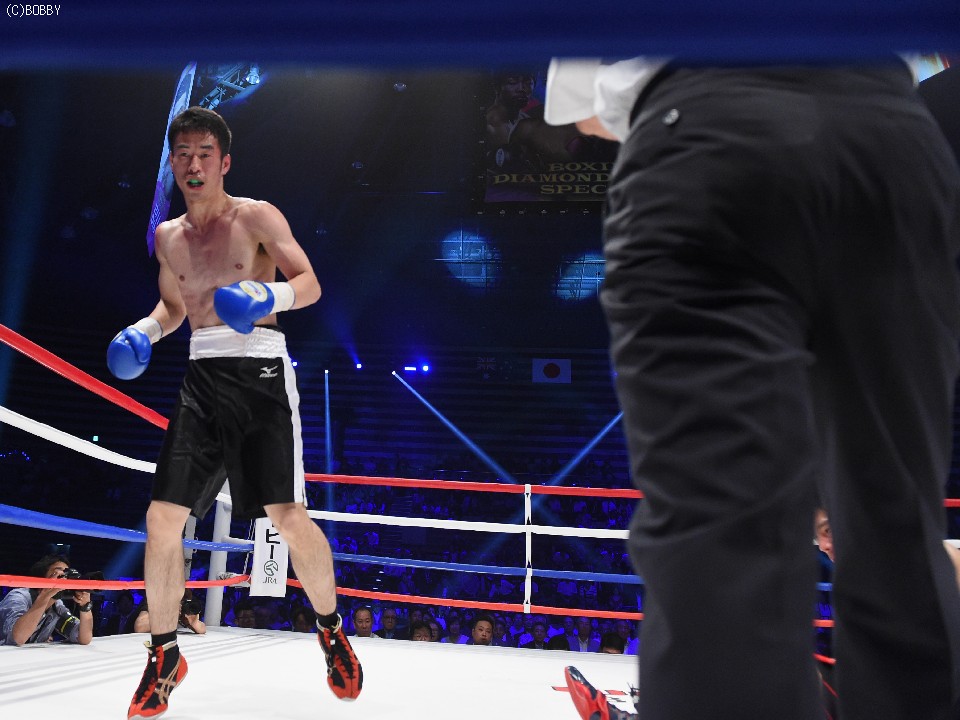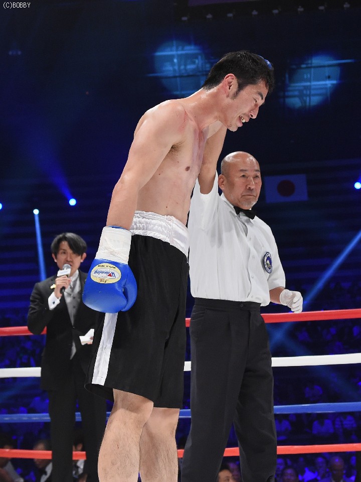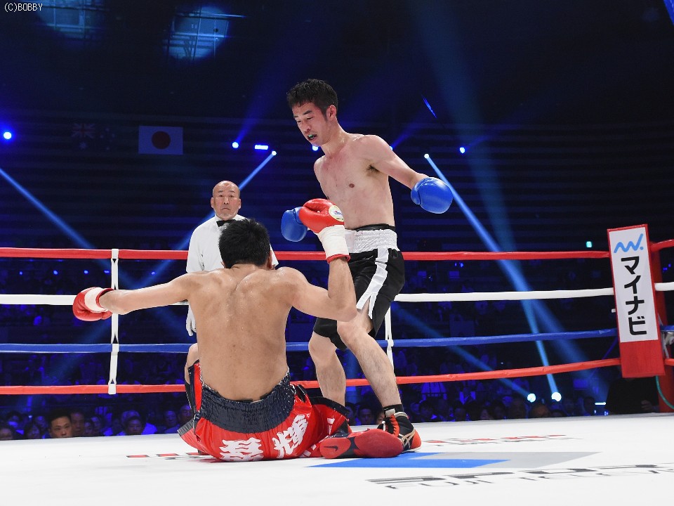 試合:サウスポーの亀山は左ストレートから右フックの返しを狙う。対する来山は距離を詰めようとするが、後手に回り思ったような展開に持ち込めない。2回、来山は亀山の右ジャブをかいくぐって打って出たが、パンチの精度はもうひとつだった。3回早々、来山のパンチが入り亀山がダウン。再開後、来山の右が命中し、亀山は腰から倒れ万事休した。