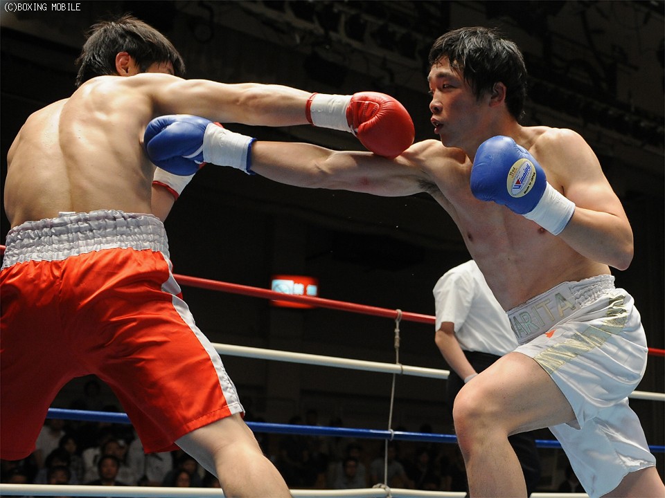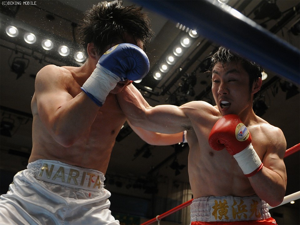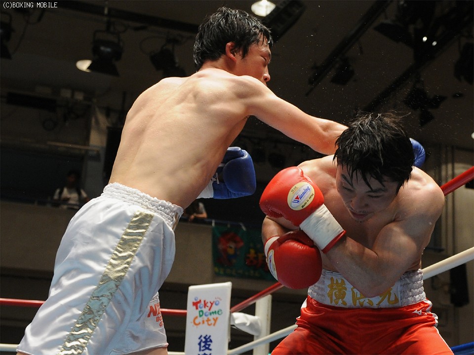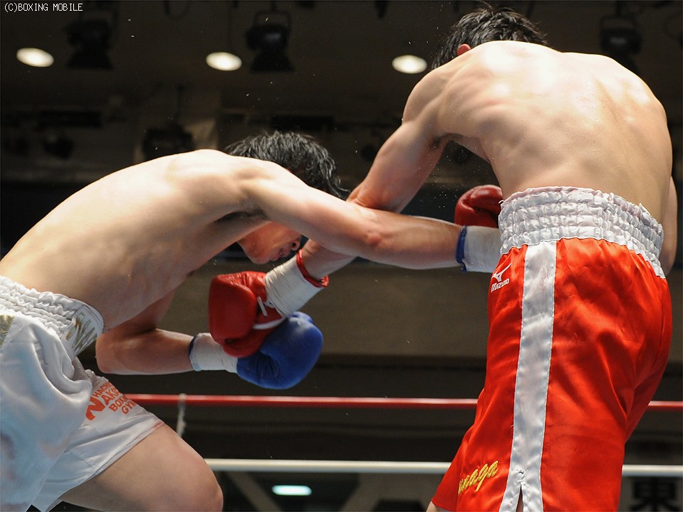 試合:成田がジャブでプレスをかけるのに対し、サウスポー松永はサークリングしながら左ストレートを放つ。2R、両者力強いパンチを交換するが、わずかに松永の左ストレートの方が命中率が良い。流れを変えたい成田はさらに攻撃を続けるが松永が足を使い上手くいなす。試合運びに余裕の出てきた松永はアウトボクシングが冴えわたり、ポイントを積み重ねる。成田の懸命の突進を最後まで冷静に捌ききった。去年の12月の全日本新人王戦以来の再起戦を勝利した松永はランキング入りも濃厚にした。