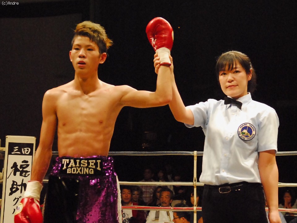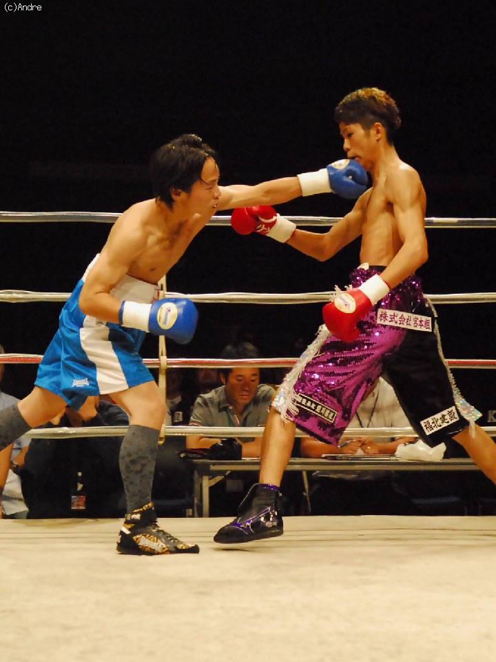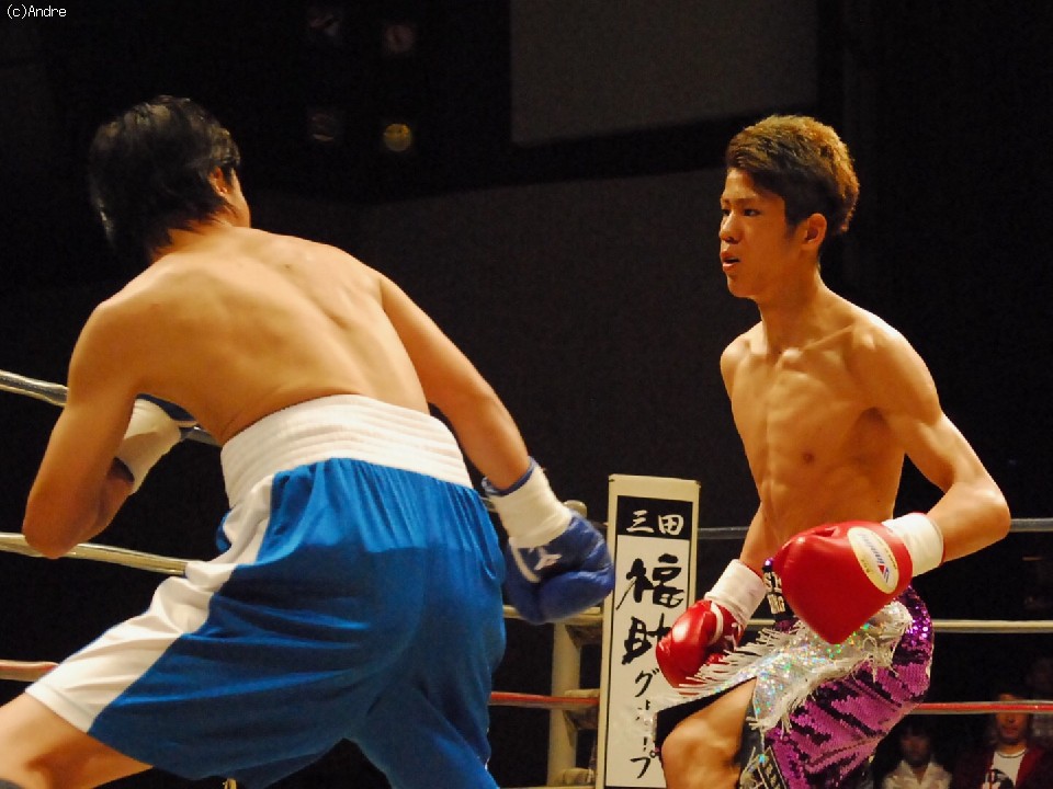 試合:デビュー戦の原口は左ジャブをあてると右を打ち下ろす。対してサウスポーの平原はトリッキーな動きをみせると飛び込んで右ジャブを突く。最終ラウンドまで平原のトリッキーな動きに自分のペースをつくれなかった原口だが判定でデビュー戦を飾る。