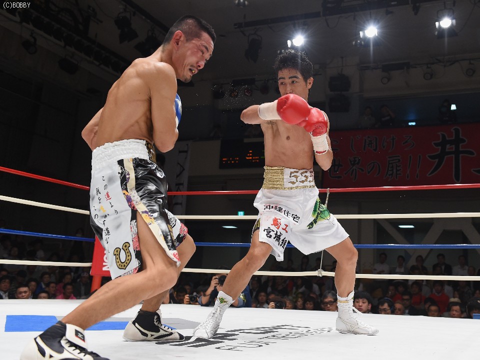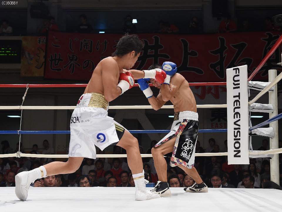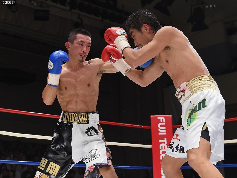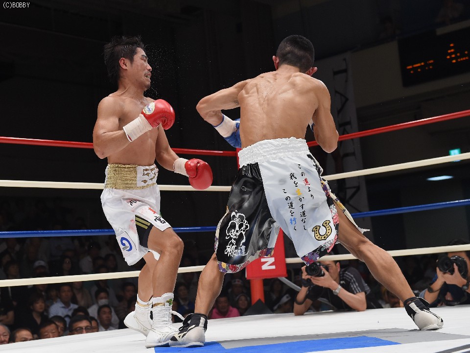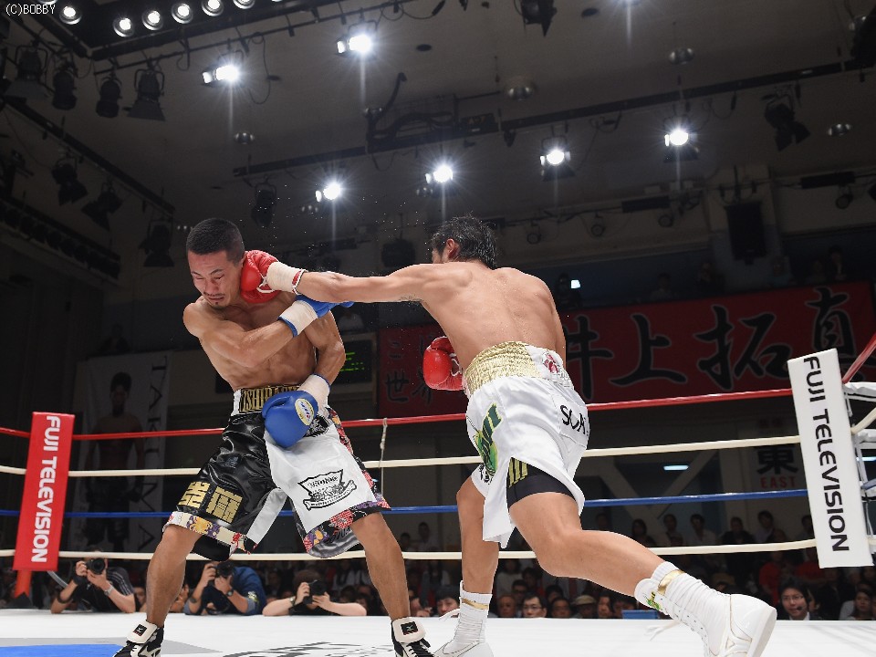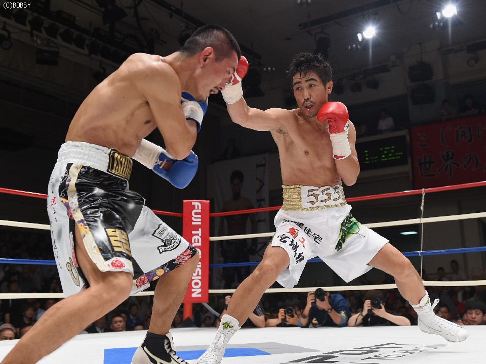 試合:2012年に日本王座決定戦で敗退(帝里に判定負け)して以来、7連勝中の翁長と3度目の日本ランカーへの挑戦となる大嶽の対戦。初回、両者フェイントをかけながら様子を見ていたが、サウスポー翁長の鋭い左ストレートが命中、大嶽はダウンを喫してしまう。2R、接近戦に持ち込みたい大嶽は頭を振りながら懐に飛び込もうとするが、翁長のステップワークに自分の距離にさせてもらえない。ペースを握った翁長は左ストレートからの返しの右フックが徐々に決まり、ダメージを与えていく。4R、被弾しながら前進を続ける大嶽がロープに詰め、右ストレートで顔をのけぞらせる場面も作るが、翁長がパンチを上下に散らしペースを譲らない。中盤、勝負を決めたい翁長が左ストレートを再三ヒットさせるが、大嶽の粘りもあり攻めあぐねてしまう。6R、終了間際、翁長の左から連打が決まり棒立ちとなったところでレフェリーはロープダウンを宣告。7R、懸命に抵抗を続けた大嶽だったが、ダメージの深さを見たレフェリーが抱きかかえた。