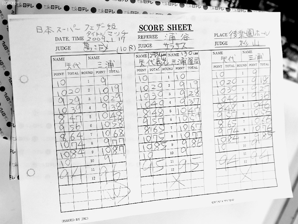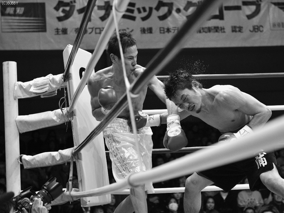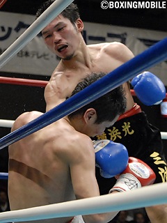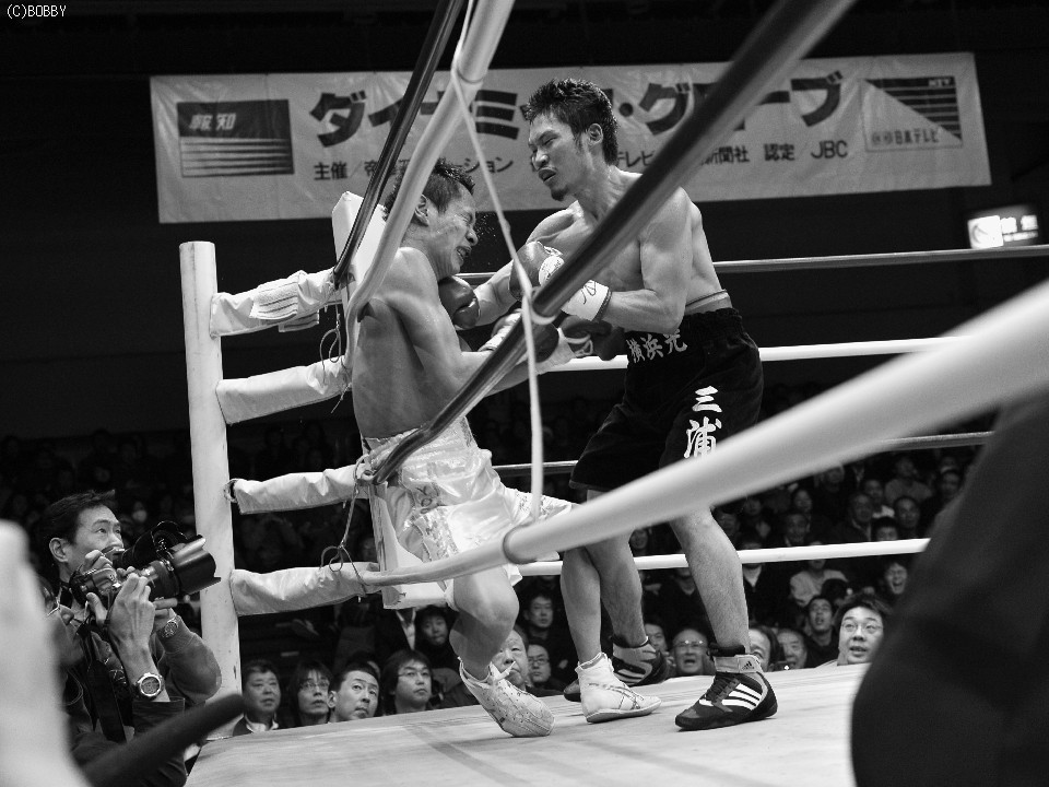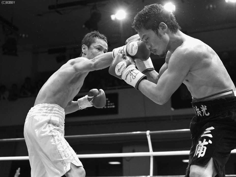 試合:共にサウスポーの両者。序盤、矢代がミドルレンジからジャブ・フックで距離を保ち、左ストレートをヒットさせポイントを奪う。対する三浦は、ガードを固めプレスを掛け、右フックをヒットさせるが単発で終わってしまい、左ストレートはスウィング気味の大降りになってしまう。中盤、矢代はジャブ・左フックで距離を保つも、少し手数が落ちる。5R、距離を詰める三浦の右フックが矢代を捕らえると、一瞬膝を落とす矢代。これを見逃さず、三浦は再び右フックから左ストレートをヒットさせると矢代はロープまで弾かれダウン。7R、三浦がジャブをヒットさせると、矢代は大きく仰け反ってしまう。三浦のジャブからの左ボディーストレートで矢代は苦悶の表情を浮かべ、この試合2度目のダウンを奪われる。何とか立ち上がり、右ジャブで三浦の追撃を凌ぐ矢代。8R、一気に攻め込みたい三浦だが、慎重になってしまう。9R、三浦は一発を狙ってしまったのか、右フックがヒットするも単発となり、逆に矢代がジャブ・右フックをヒット。最終10R、ここで矢代がポイントを奪いに出る。ジャブで距離を計り、左ストレート・右フックを的確にヒット。三浦は距離を奪われ反撃叶わず。矢代が序盤・最終とポイントを奪い、三浦は2度のダウンポイントを奪った試合は、96-94三浦、95-95、94-94の判定0-1ドローがコール。三浦は7Rに奪ったダウン以降、慎重に試合を組み立てたのが裏目となってしまったのか、終盤に矢代の反撃を許し、ドロー裁定に涙を呑んだ。矢代は辛くも王座防衛となった。