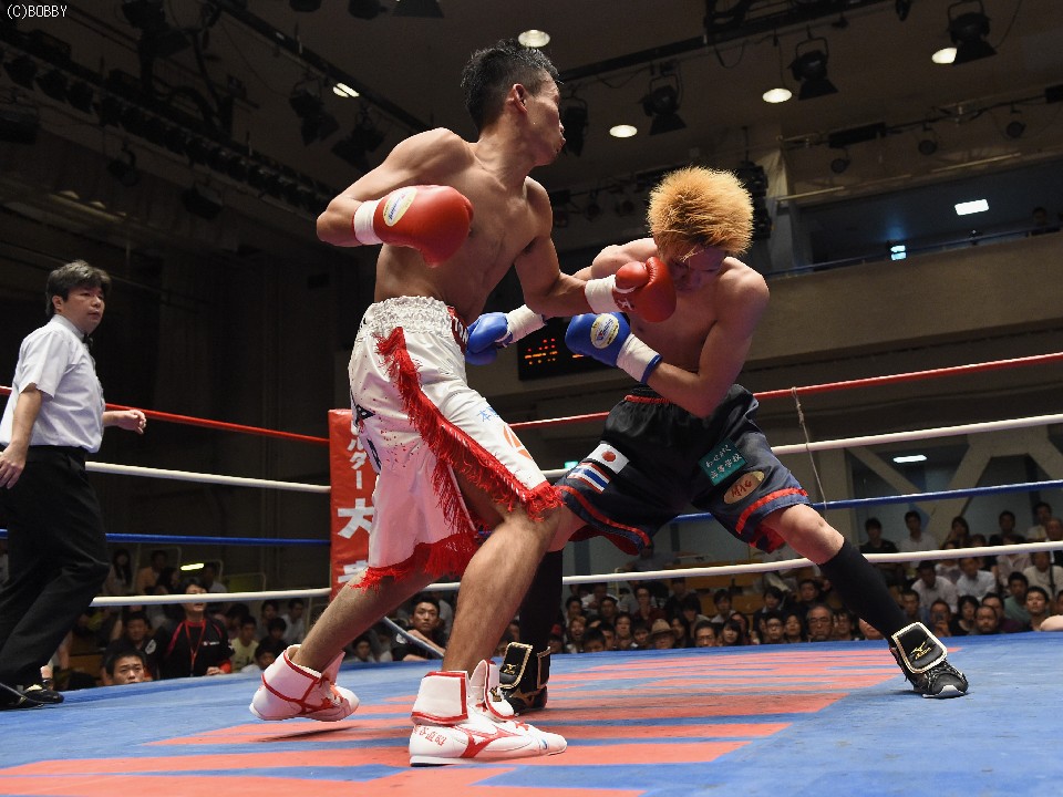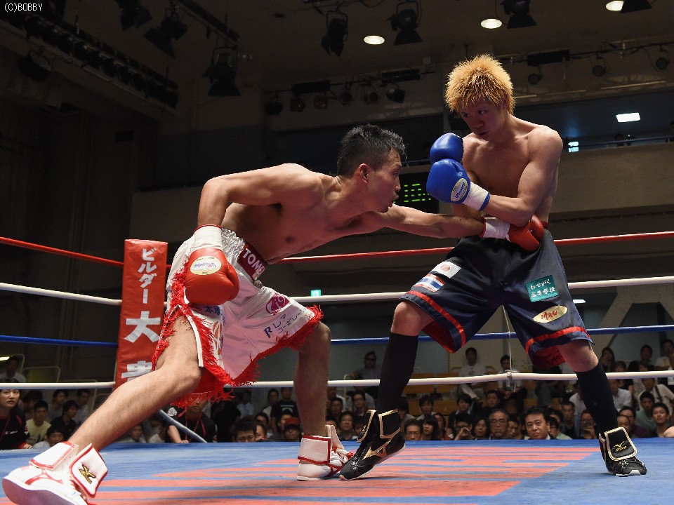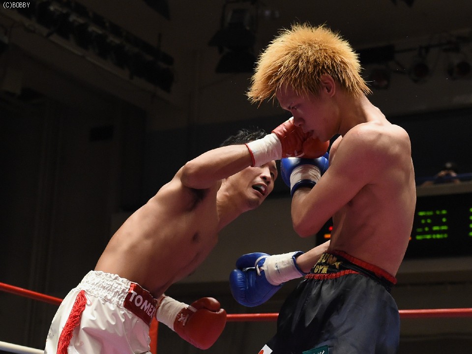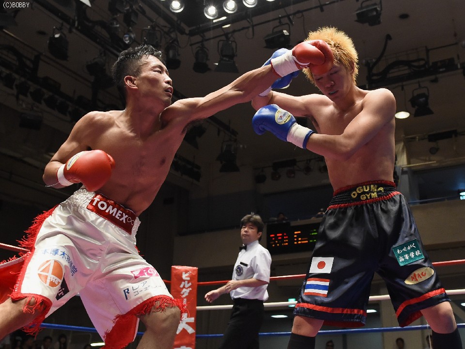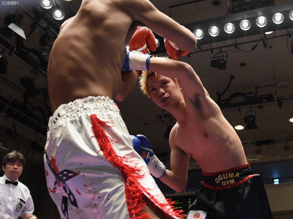 試合:ともにA級昇格のかかったトーナメント戦。初回は低く構え、サウスポー玉木の入り際に左フックを狙う熊谷がポイントを奪う。2Rもいきなりの右や左ボディをカウンターで合わせペースを握りかけたが、玉木も左の強打を狙い、単発ながら熊谷の打ち終わりにストレート、アッパーをヒット。だが、熊谷の変則的な攻撃に最後までリズムが掴めず、手数、有効打とも上回られてしまった。