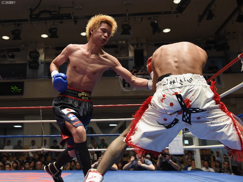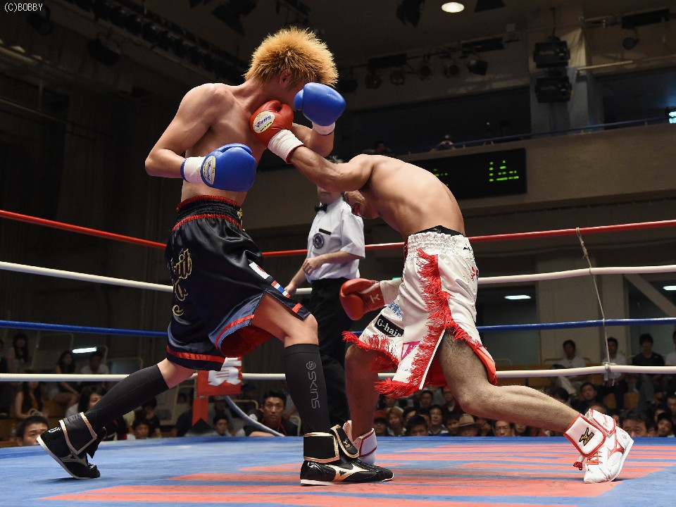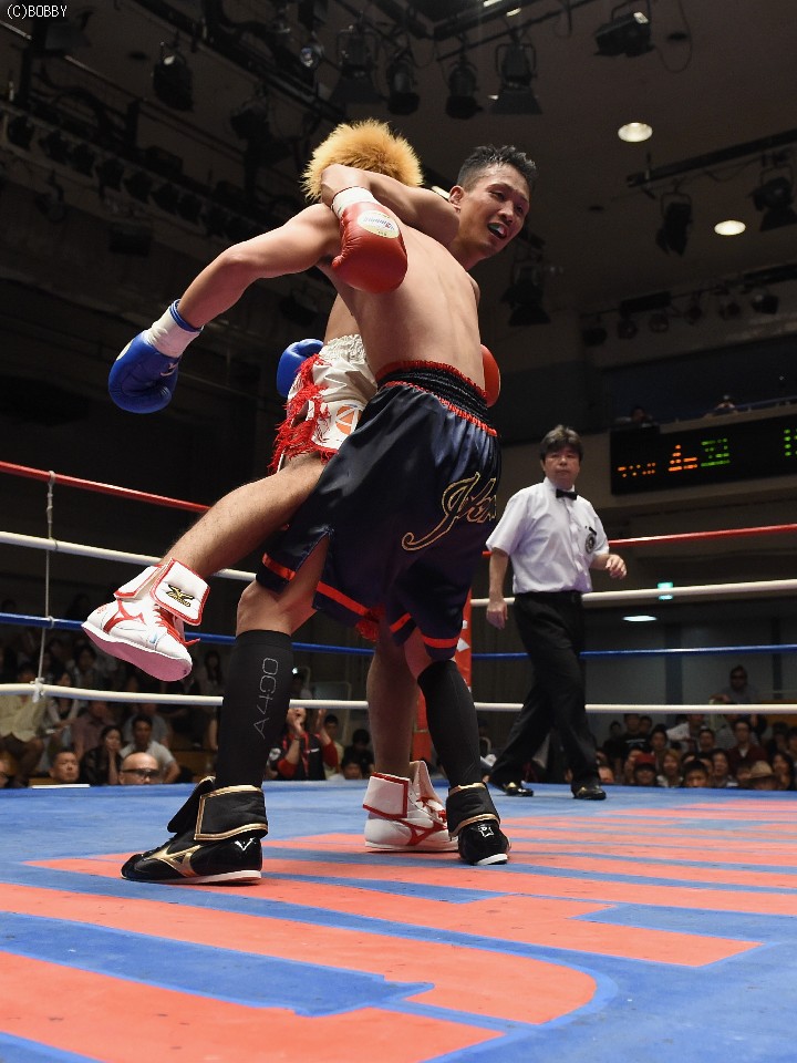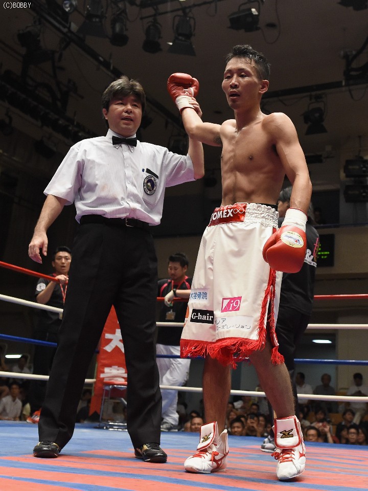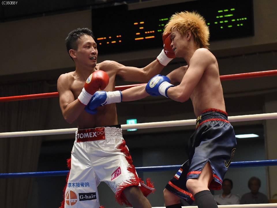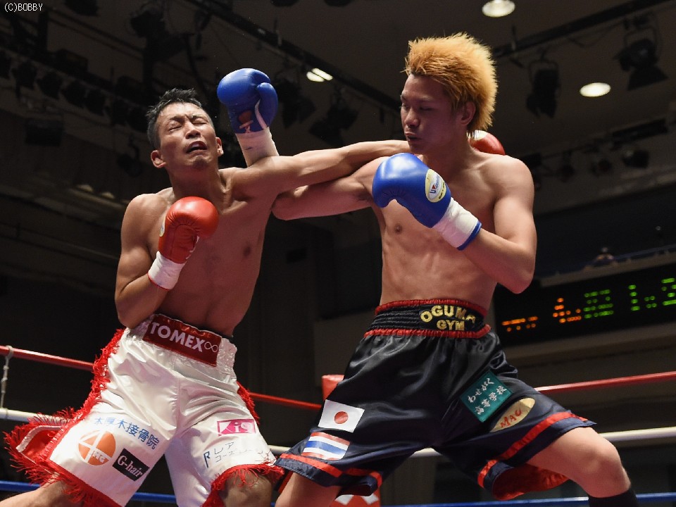 試合:ともにA級昇格のかかったトーナメント戦。初回は低く構え、サウスポー玉木の入り際に左フックを狙う熊谷がポイントを奪う。2Rもいきなりの右や左ボディをカウンターで合わせペースを握りかけたが、玉木も左の強打を狙い、単発ながら熊谷の打ち終わりにストレート、アッパーをヒット。だが、熊谷の変則的な攻撃に最後までリズムが掴めず、手数、有効打とも上回られてしまった。