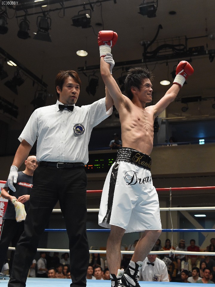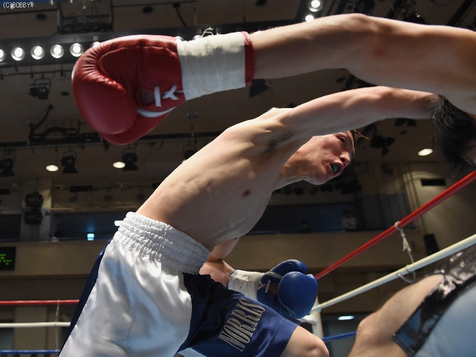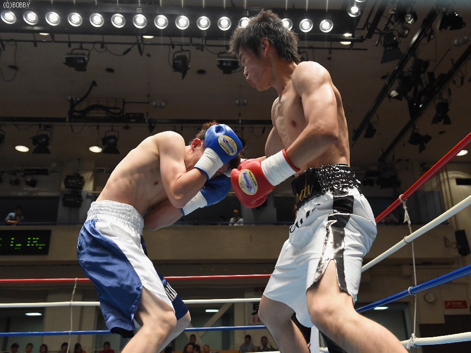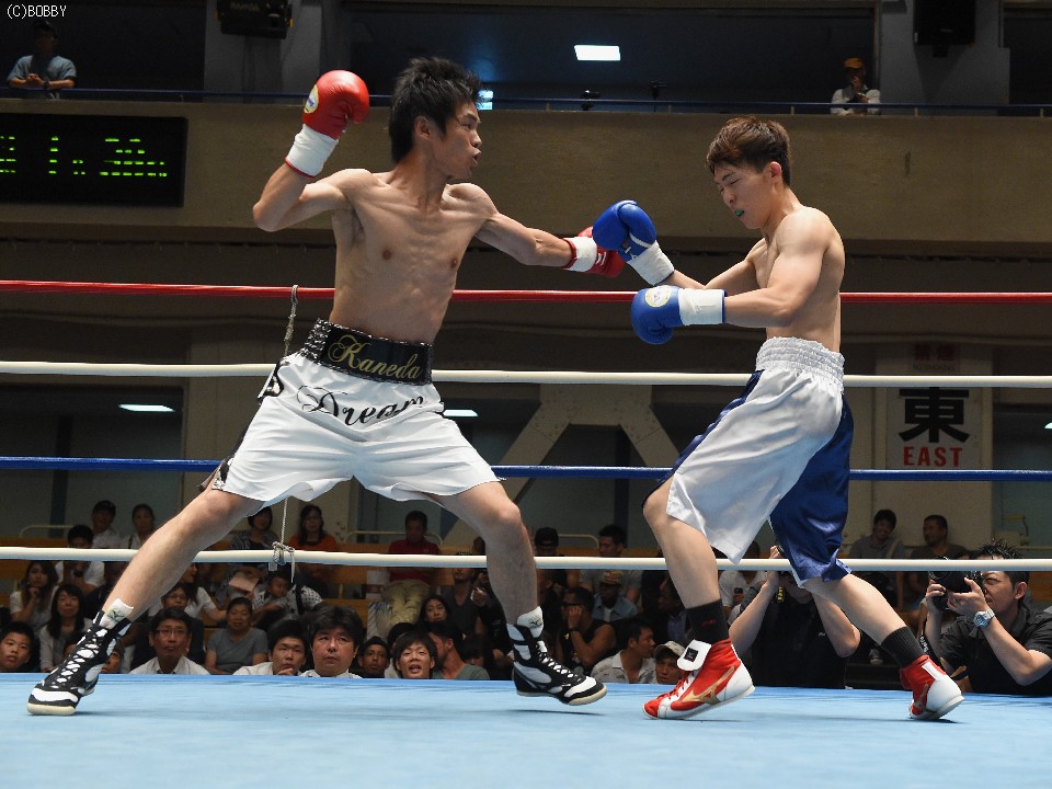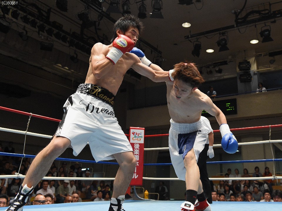 試合:この試合が6年ぶりの試合になる金田だが緊張している様子はなく落ち着いた試合運びを見せる。2R、矢野は得意のフットワークを駆使して遠い距離から右を狙うが、金田も鋭いジャブで応戦。クリーンヒットはないものの緊張感のある攻防が続く。3R、一進一退の展開が続くが金田浅いながらも右ストレートがヒットしてわずかに優勢の印象を植え付ける。4R、先に仕掛けたのは矢野だったが金田の右カウンターが決まりポイントを奪った。