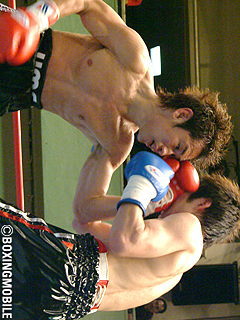 試合:前日本フェザー級王者・現同級7位の梅津とランクインを狙う中村の一戦。序盤、ガードをきっちり固めジャブでリズムを掴む梅津。中村は力みがあるのか、打ち終わりを読まれ、梅津の右を再三もらってしまう。リズムに乗れない中村は梅津のガードを破れず、次第に先手が出なくなる。5R、梅津は中村を連打で追い込みにかかると、コーナーに詰めラッシュ。中村も打たれながらも応戦するが、次第に身体が沈み始め、レフェリーが5R終了間際、試合をストップした。