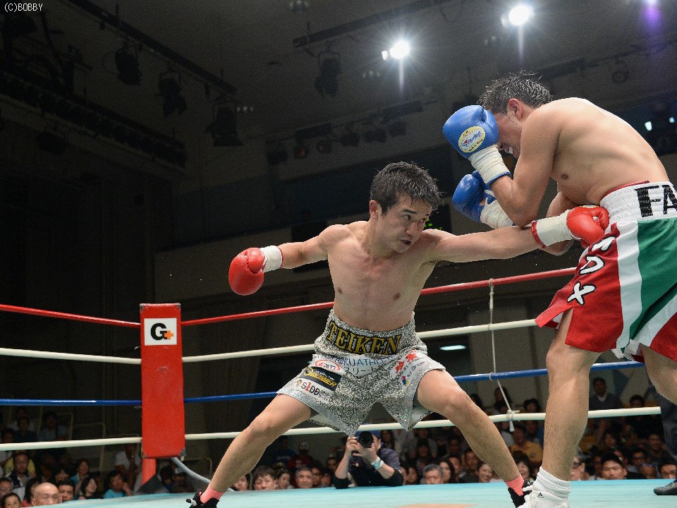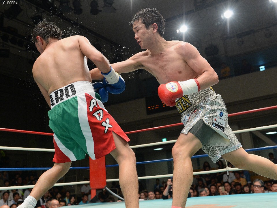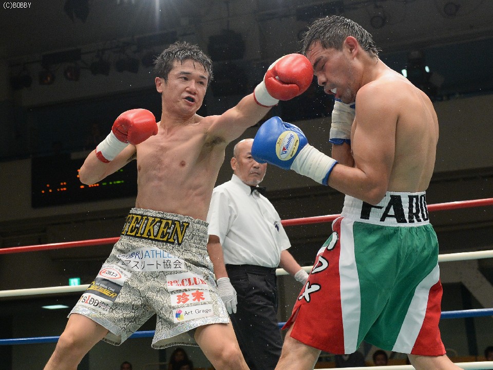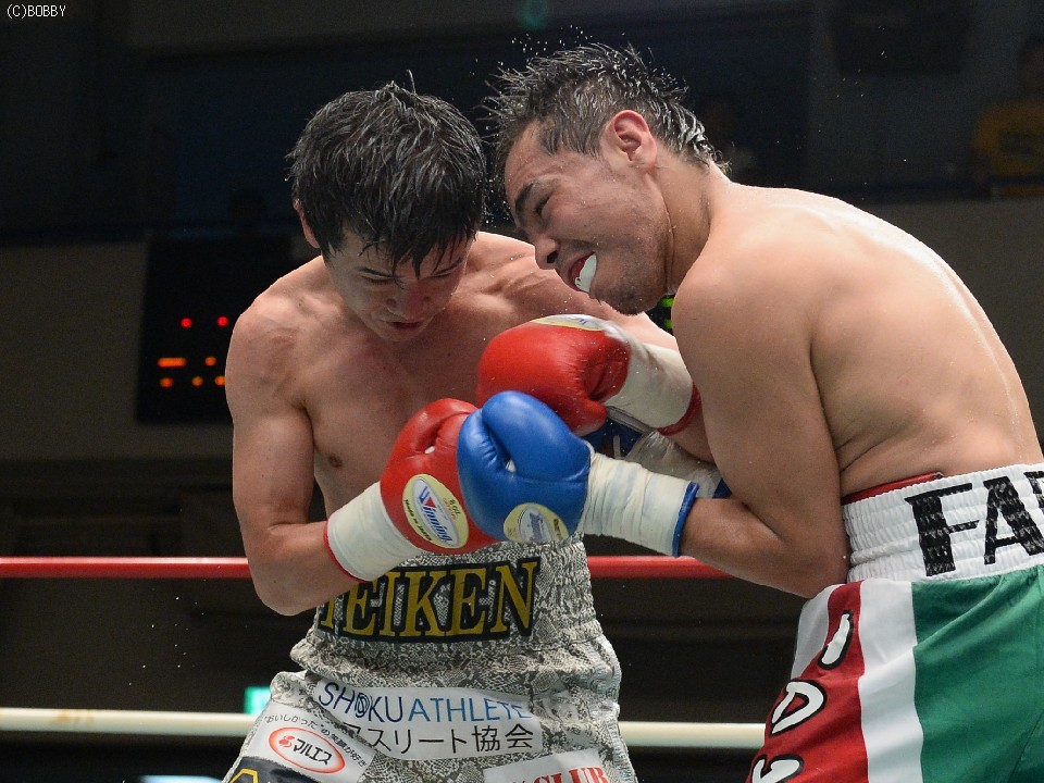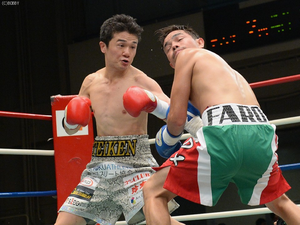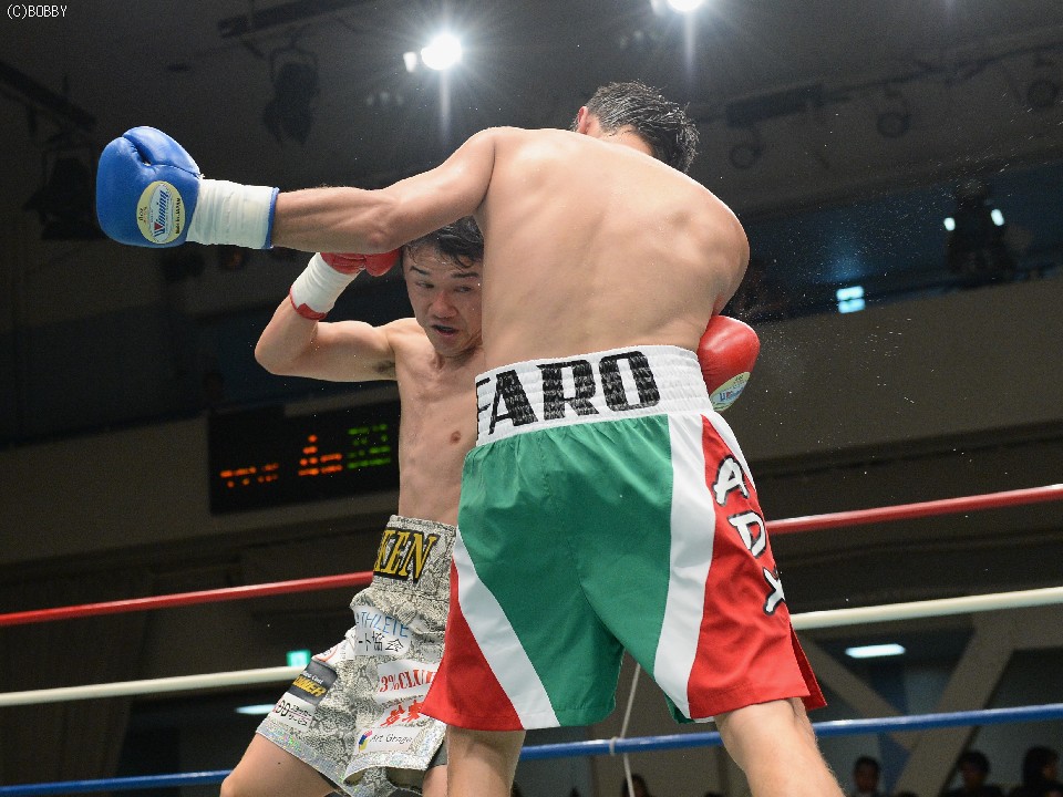 試合:上体を細かく動かしながらリズムをとるファロに対し、木村は右を浅くくヒットして場内を湧かせる。偵察しながらも上々のスタートをきった木村は2回、相手の打ち終わりにワンツーを返したり左ボディブローで誘ってみたりと仕掛け始める。ファロも徐々に好戦的になっていったが、木村は適度に足をつかい間合いを外す。そして間隙を縫って細かいワンツーをヒットするなど、巧者ぶりを発揮。その後もスピードとスキルで勝る木村は危なげなくファロをコントロールして主導権を握り続けた。5回になるとファロが左右のフックで荒々しく攻めて出たが、木村は慌てることなく対処、巧みに迎え撃った。6回、今度は木村が積極的に仕掛け、右ストレートでファロを後退させた。この右で瞬間的にファロは右足が痙攣したのか動きが鈍り、そこに乗じて木村が左右を打ち込むシーンもみられた。7回も木村はワンツーでファロを追い込みリードを広げた。8回、ファロが左右を振って反撃を試みたが、木村は上体の動きとブロックで封じてみせた。そしてラウンド終盤にはワンツーを好打、攻撃力のあるところも印象づけた。9回、木村は守勢に回る場面もあったが大きなトラブルに陥ることはなく、流れを引き戻してラウンドを終えた。最終回、逆転を狙ってファロが左右フック、右アッパーを打って出たが、木村もワンツー、左の上下などで応戦し、打ち勝って試合終了のゴングを聞いた。