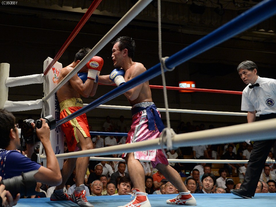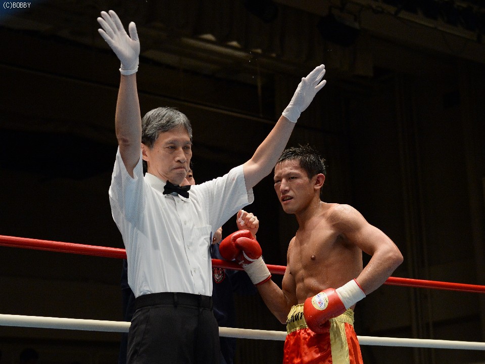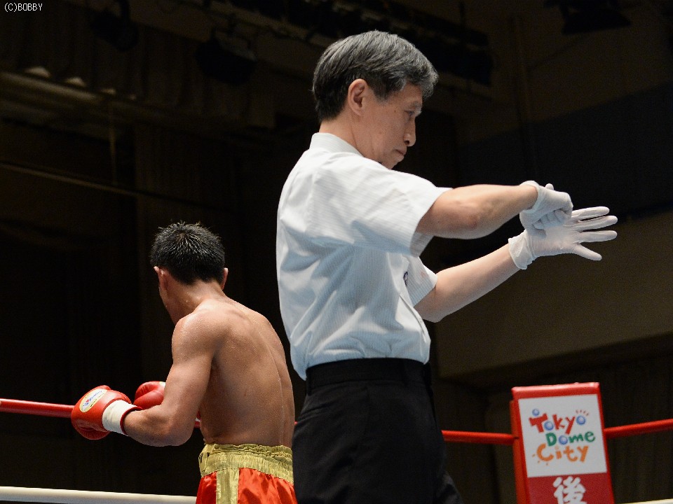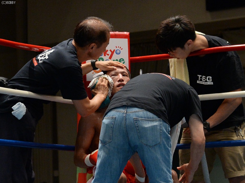 試合:前回の試合で1R・TKO敗けを喫したサウスポーの花香が、こちらも連敗を避けたい櫻井と対戦。ワンツーからのコンビネーションでリズムを掴みたい花香だが、序盤からファイター櫻井の圧力と手数に苦戦。ワンツーからボディ、右アッパーを好打され、ロープを背負う時間が長く続いた。それでもなんとか前に出ようとしたが、距離をことごとく潰され連打も続かず。4Rは一方的に打ち込まれ、ストップ寸前。花香はこの回にヒッティングにより右目にダメージを負い、5Rのドクターチェックで続行不能とレフェリーが判断。櫻井のTKO勝ちとなった。