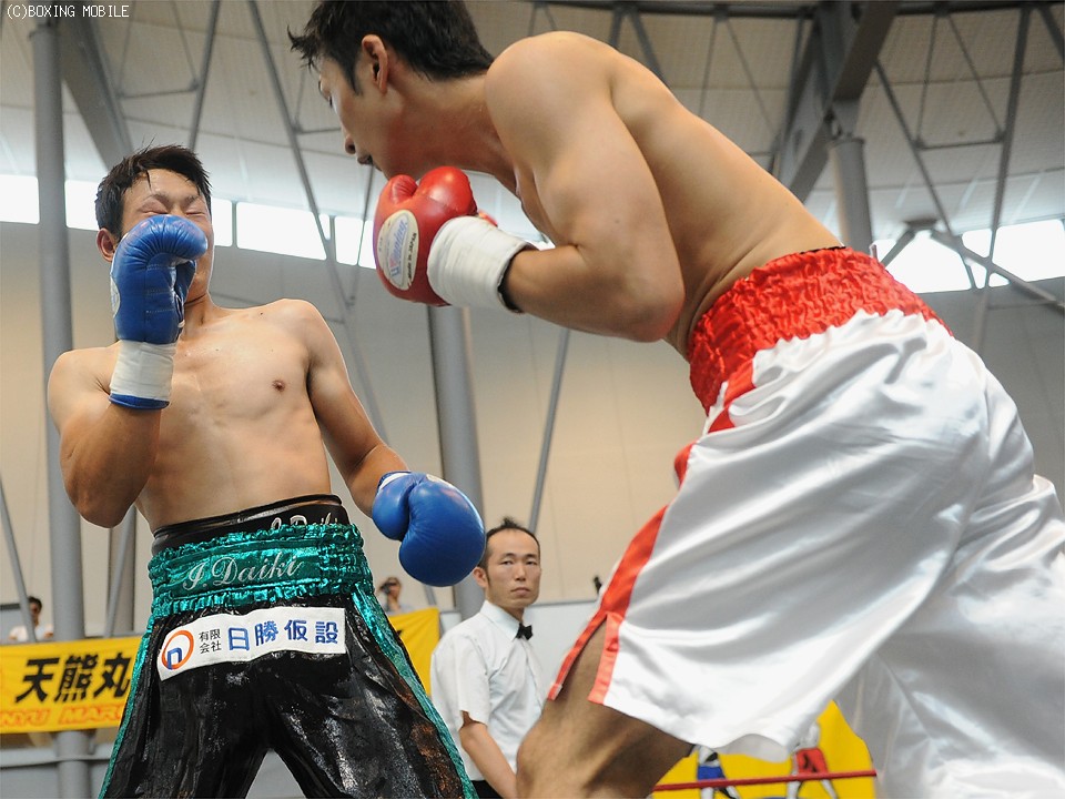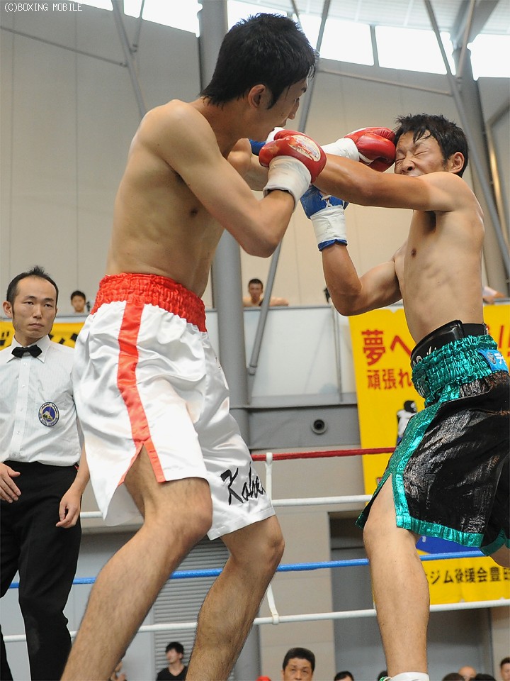 試合:両者とも中間距離をキープし、ワンツー、フックの応酬でスタート。初回には右ストレート、左フックを好打した古澤だが、2Rに入ると市川の回転が勝り、左フックから返しの右フックをテンプルに強打された。これで足が揺れた古澤は、続けざまに左右をまとめられレフェリーストップ。2R・TKO勝ちの市川が技能賞を獲得した。