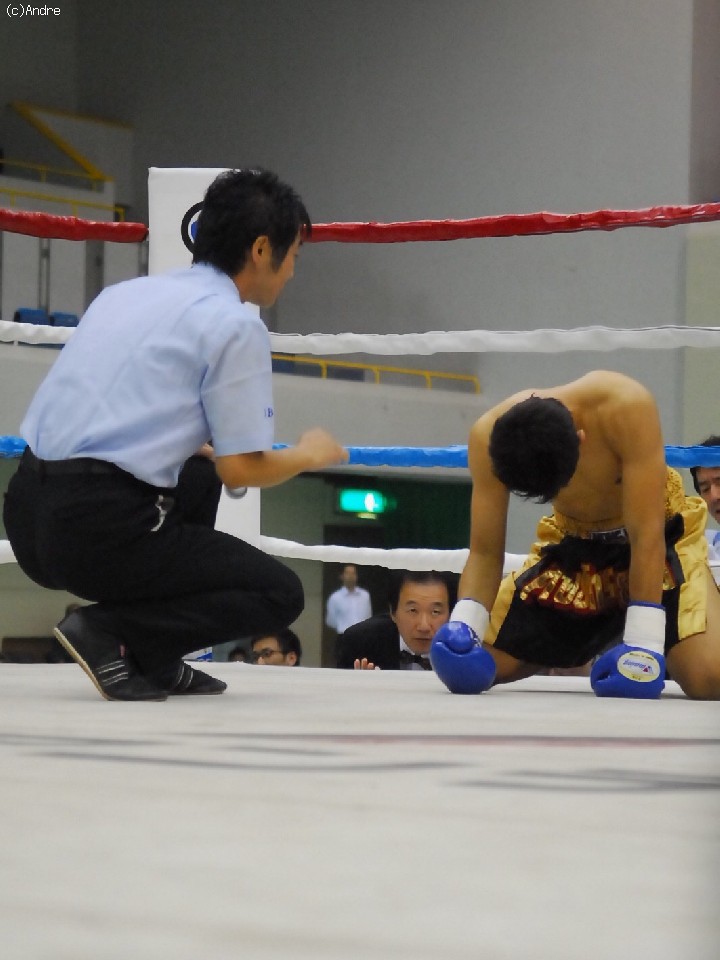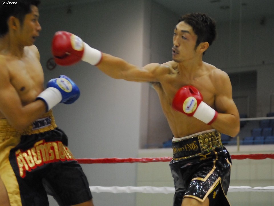 試合:序盤から上谷がスピードを生かしワンツーからコンビネーションを的確にあてていく。対して、セーリチャイは上谷のスピードについていけず。すると1R中盤、上谷左ボディをもろにもらったセーリチャイが1度目のダウン。立ち上がるもさらに上谷ボディが決まりこのラウンド2度目のダウン、しかしここは立ち上がったセーリチャイはゴングに救われる。すると2R、上谷の渾身の左ボディが決まり苦悶の表情でリングに倒れたセーリチャイはそのまま10カウントを聞く。上谷の鮮やかなKO勝利。