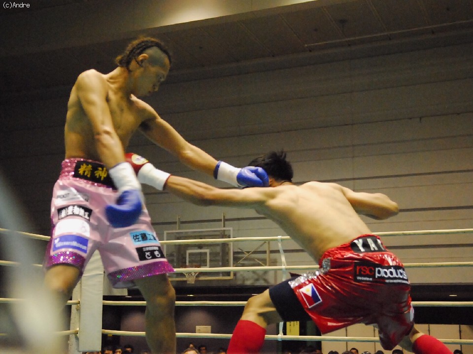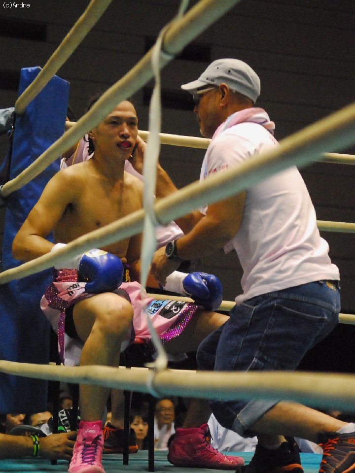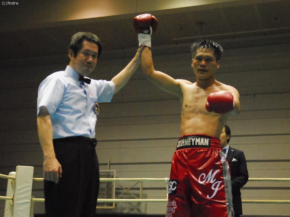 試合:ガードを高く上げジャブで組み立てる石橋に、ヤップは腰を落として右を狙う展開。2R、ジャブの差し合いは互角だが、ヤップが先に仕掛け石橋が返しのパンチを放つ。3R早々、ヤップのワンツー左フックがヒットして石橋はバランスを崩す。ヤップの強烈なパンチが顔面を捉えはじめて迎えた4R、ヤップはボディにもパンチを集めて攻勢を取るが、石橋の右スレートで腰を落としてしまう。6R、「パパ頑張れ~!」の声援の後押しを受けて石橋がジャブで圧力をかけ、リズムを掴んでくる。しかし、ヤップもペースを渡さない。7R、ラフなパンチでリズムを崩し、ポイントを奪い返す。8R、逆転を狙って石橋はジャブで追いかけるが、ヤップは足を使って反撃の目をつぶし試合終了のゴングを聞いた。これでヤップは3連勝を飾った。