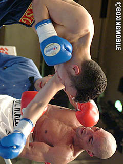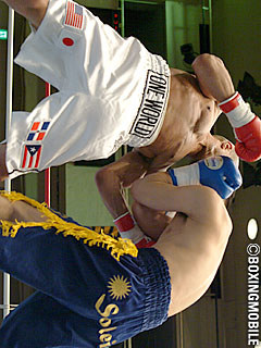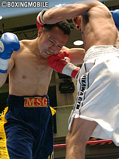 試合:元日本フェザー級王者で現在35歳のゴメスに22歳の若手、梶山が挑んだ一戦。ゴメスは開始から強烈な右ボディブローを連打で叩き込むと、左のボディアッパーからさらにアゴを狙ってアッパーカットを打ち込む。開始直後のゴメスの猛打に耐えた梶山もボディブローを返し、序盤から激しいボディの打ち合いに。3R、失速気味のゴメスにファイター梶山は足を使い、出入りでゴメスの距離を潰す作戦に。離れては回り込んでジャブから入りボディブロー、アッパーを放ち、接近でゴメスが打ち込もうとするとガードを固め頭を押し込み連打。5Rには度々のバッティングで減点1を宣告されるが、この繰り返しでゴメスの攻撃を封じた梶山が0-3の判定を掴み取った。