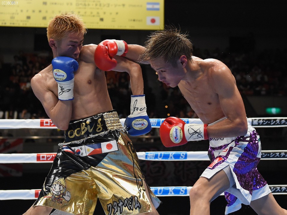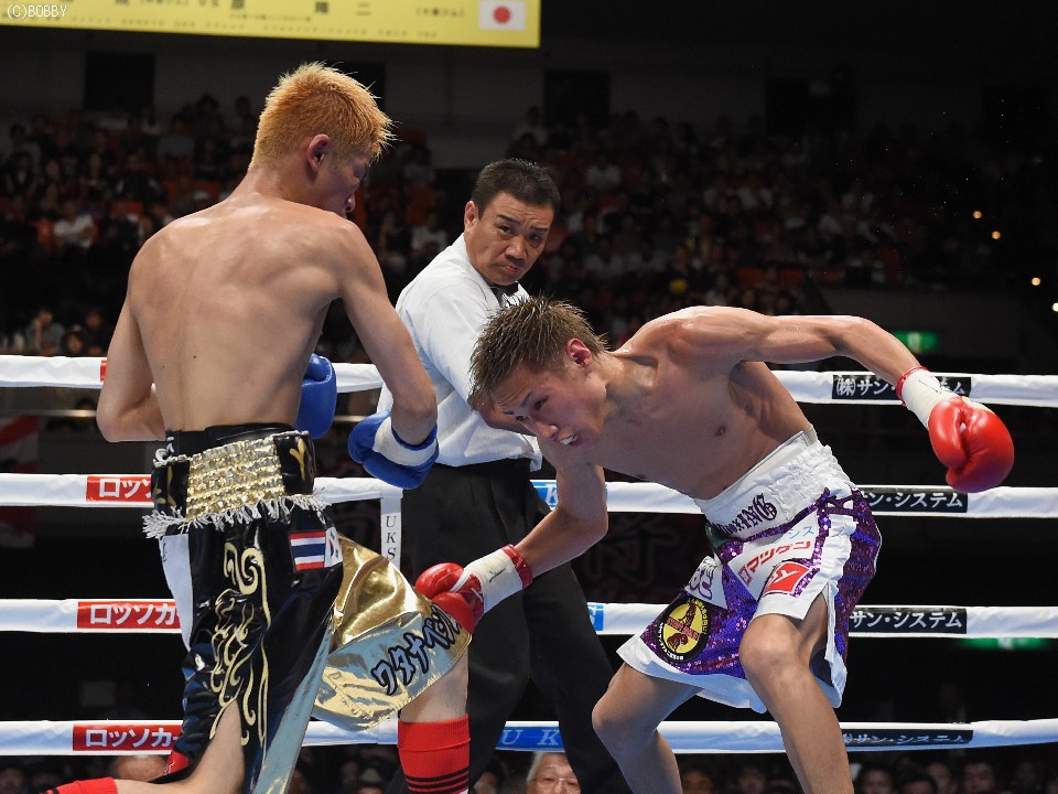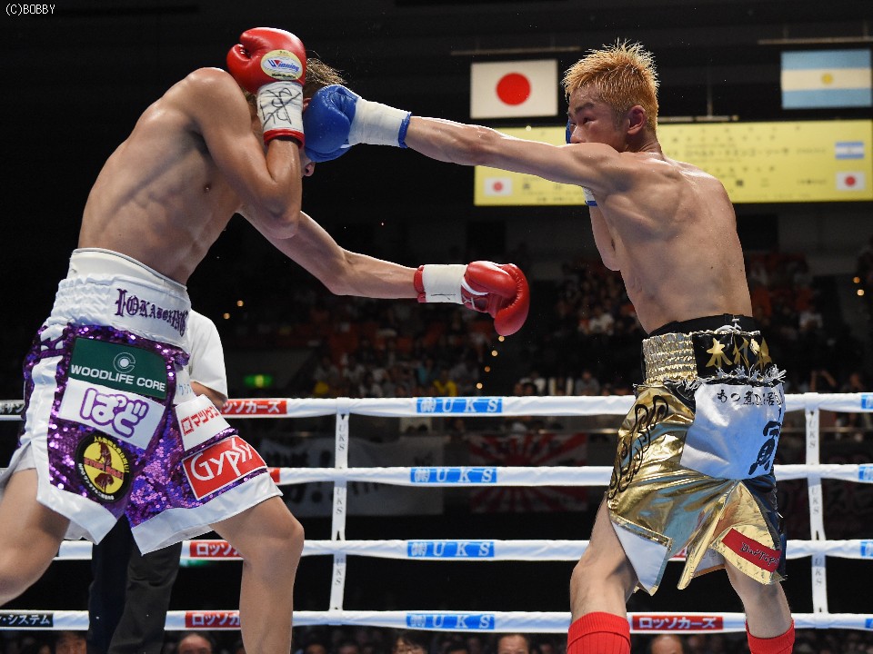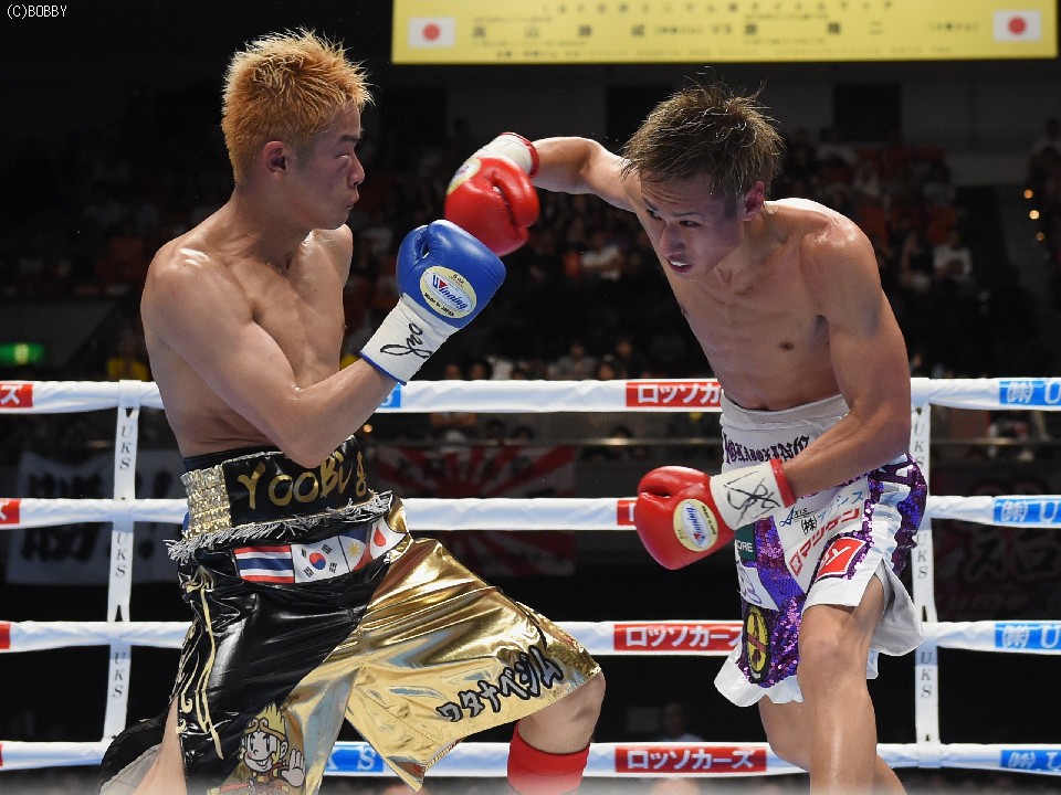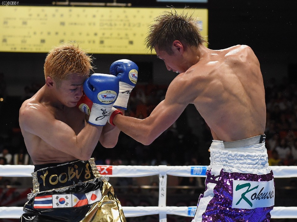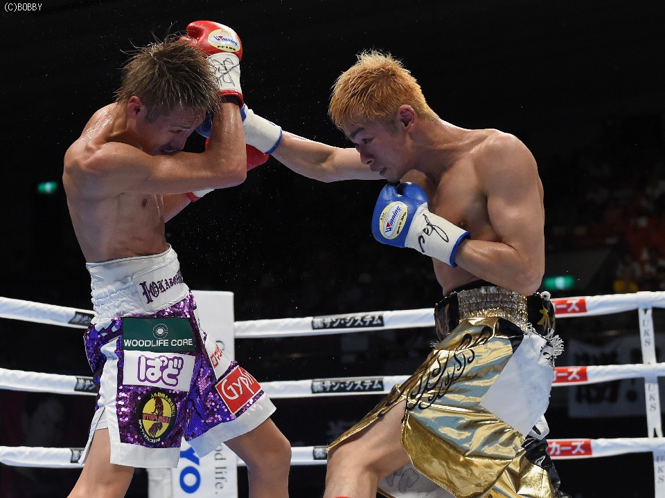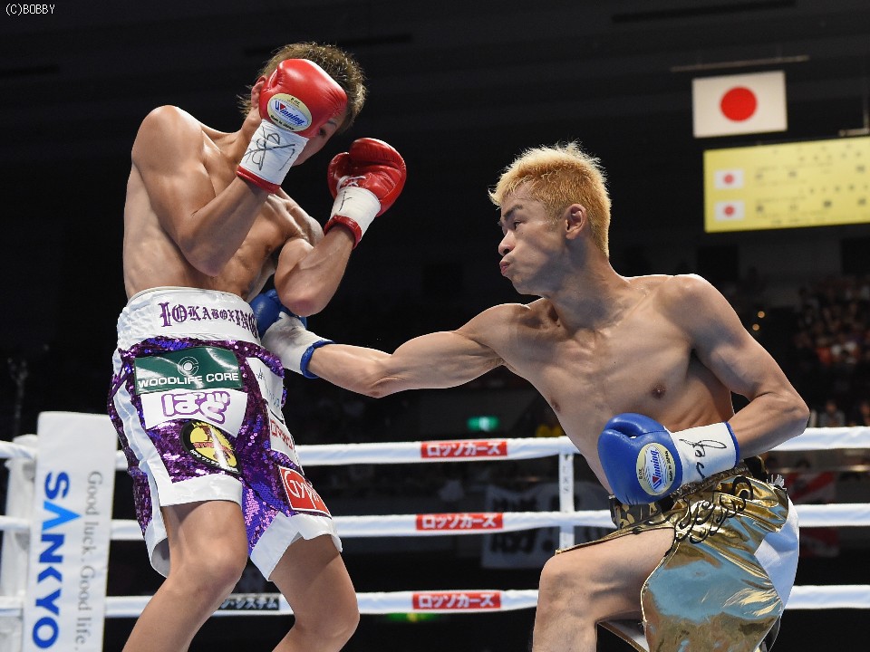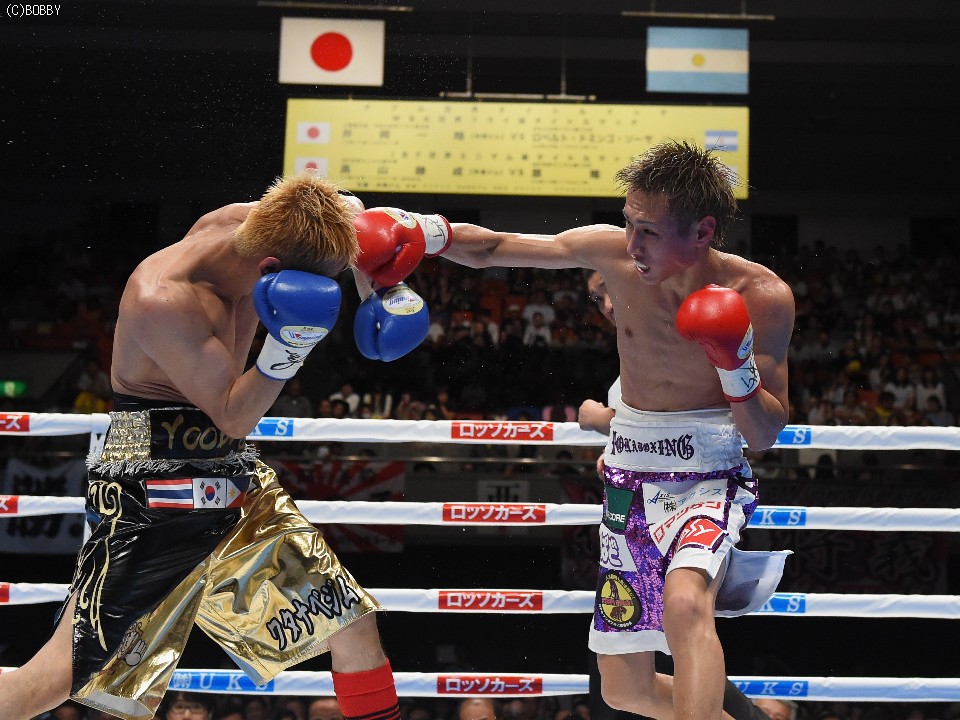 試合:元WBOアジアパシフィック・Sフライ級暫定王者、元韓国同級王者の肩書きを持つ木村を迎え、石田が3度目の防衛戦に臨んだ。スピードに定評のある両者とあって、ジャブを突いての距離の探り合いでスタートしたが、立ち上がりは王者・石田が右のカウンターで上回った。木村も2Rに入り攻撃的に出ると、ジャブから右を上下に繋げるなど動きにキレが増した。石田も冷静に距離を保ち、ジャブ、ワンツーで引き離しにかかるが、木村の速いペースに序盤でスタミナを消耗。それでも有効打では上回り、左フックで木村の右目下を大きく腫らすなど、5回終了時の採点は48-47,49-46,50-46でリード。この採点を聞いてプレスを強めた木村は、単発のボディを効かせるが、序盤のスピードは影を潜め、石田にワンツーで迎え撃たれてしまう。それでも終盤はボディから上に返しヒットを奪ったが、石田もここ一番で右を好打し主導権を離さず。決め手には欠けたが、最後までジャブを突いて試合を組み立てた石田が、日本タイトル初挑戦の木村に最大8ポイント差をつける判定勝ちを収め、V3に成功した。