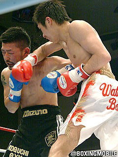 試合:この日のメインで行われる日本フライ級王者への挑戦権が勝者に与えられる試合。序盤、低く構え、積極的に前に出る今宮。金城は今宮を迎え撃つ形だが、今宮の打ち終わりをジャブで合せるなど落ち着いている。金城のパンチは正確で無駄が無く、攻防にメリハリがある。中盤以降、今宮もなんとか懐に飛び込もうと金城のガードの上からも構わず打ち込みヒットも奪うが、ガードの意識が薄く距離をとったところを狙われてしまう。しかし7R、今宮の右がカウンターで決まり、一瞬、金城の動きが止まる。すかさず今宮がパンチをまとめると金城もこれに応戦。両者打ち合いの展開。最終8R、ここも金城が打ち合いに応じるとラスト20秒、今宮の右がまたカウンターで決まり、金城がこの試合初のダウン。立ち上がる金城だが、ダメージは深刻。足にきている所を今宮がラッシュをかけると金城はクリンチで逃れるのがやっと。さすがに今宮もラスト10秒では仕留めることが出来ず、勝敗は判定に。痛恨のダウンを喫したが、終始試合をリードした金城が3-0の判定をものにし、次期タイトル挑戦権を得た。