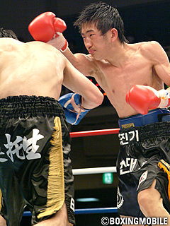 試合:チャンピオンホルダー、長縄正春(岐阜ヨコゼキ)が網膜剥離の為、突然の引退。急遽、同級4位の鄭(韓国)が出場し、この試合は王座決定戦に。序盤、18歳と若い鄭(8戦5勝3敗)は前に出て手数を出すが、振りが大きくガードも甘い。大久保も一発を狙ってか、大振りのスウィングで対抗。しかも見た目ほどパワーを感じられず、ボディで足を止めた方が良さそう。3R、ボディ攻撃に切り替えた大久保。左ボディでしつこく鄭のレバーを叩くが、4R、5Rが過ぎても鄭の足は止まらず。鄭の左上体が赤くなるが、鄭は最終12Rまでこのスタイルで戦い抜き脅威のタフさを見せ、終盤は手数で大久保を上回るほど。しかし全体を通して、大久保が手数、有効打で上回り、12Rフルの戦いは大久保が大差の判定で勝利。東洋フライ級王座を奪取した。