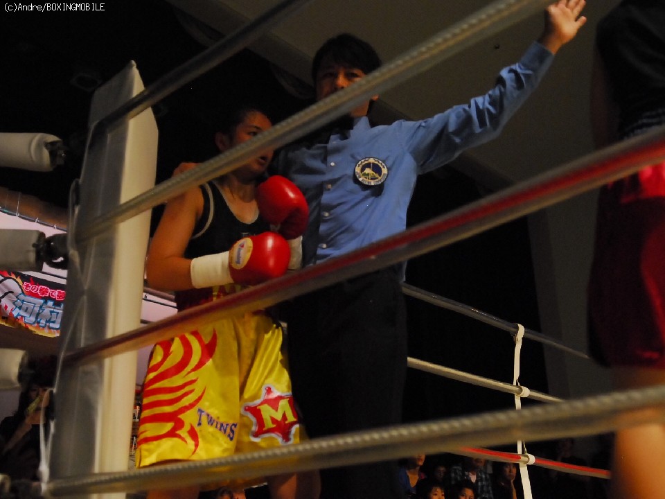 試合: 緒方はジャブをつくと大きな右フックを振るう。対して、シーザーは緒方のパンチを受けながらも右を伸ばす。3R終盤、ロープに詰めた緒方が左右のフックを決めるとシーザーがダウン。しかし立ち上がったシーザーは直後のゴングに救われる。すると4R終盤、またもシーザーをコーナーに詰めた緒方が連打を浴びせレフェリーストップを呼び込んだ。